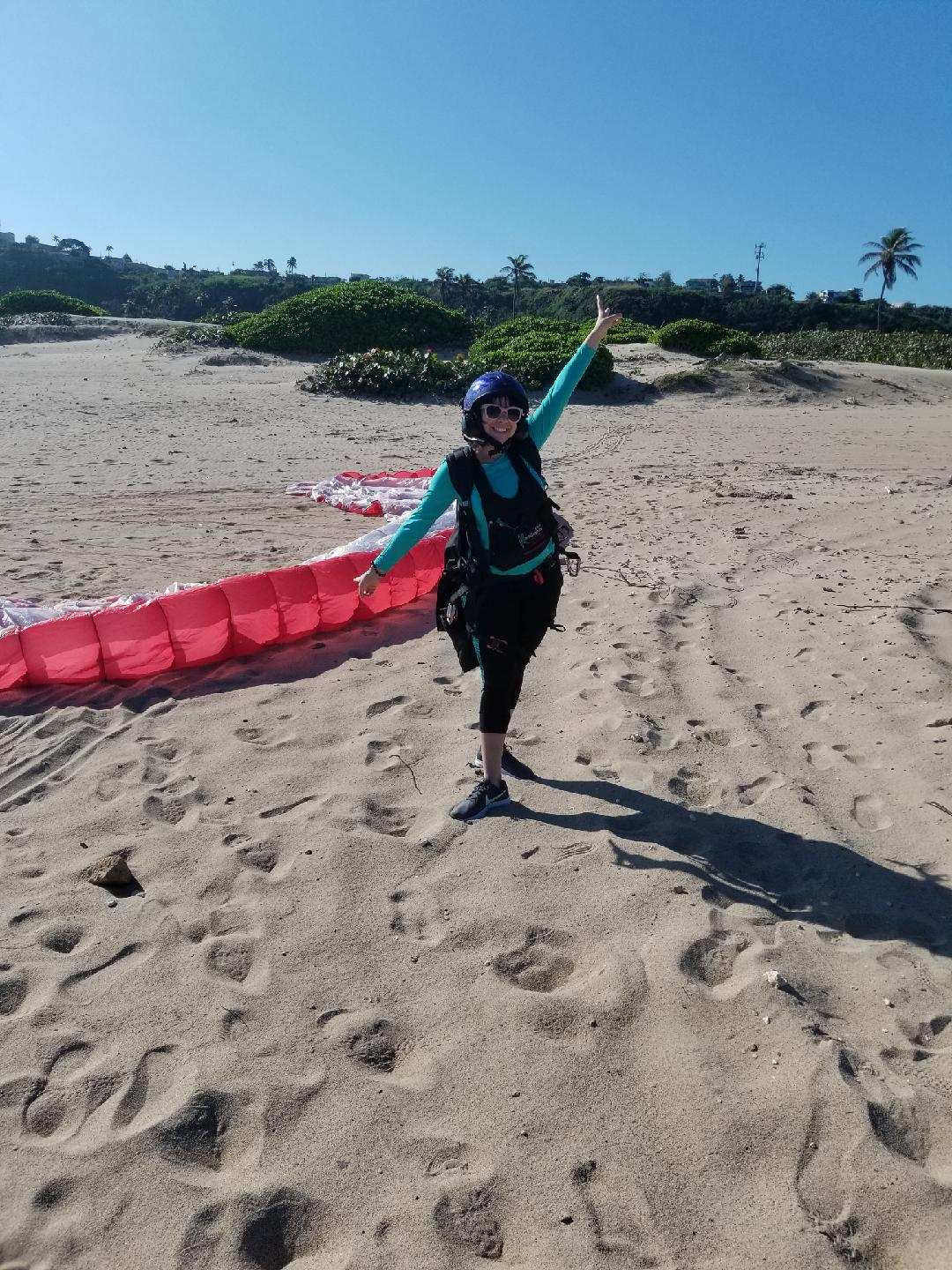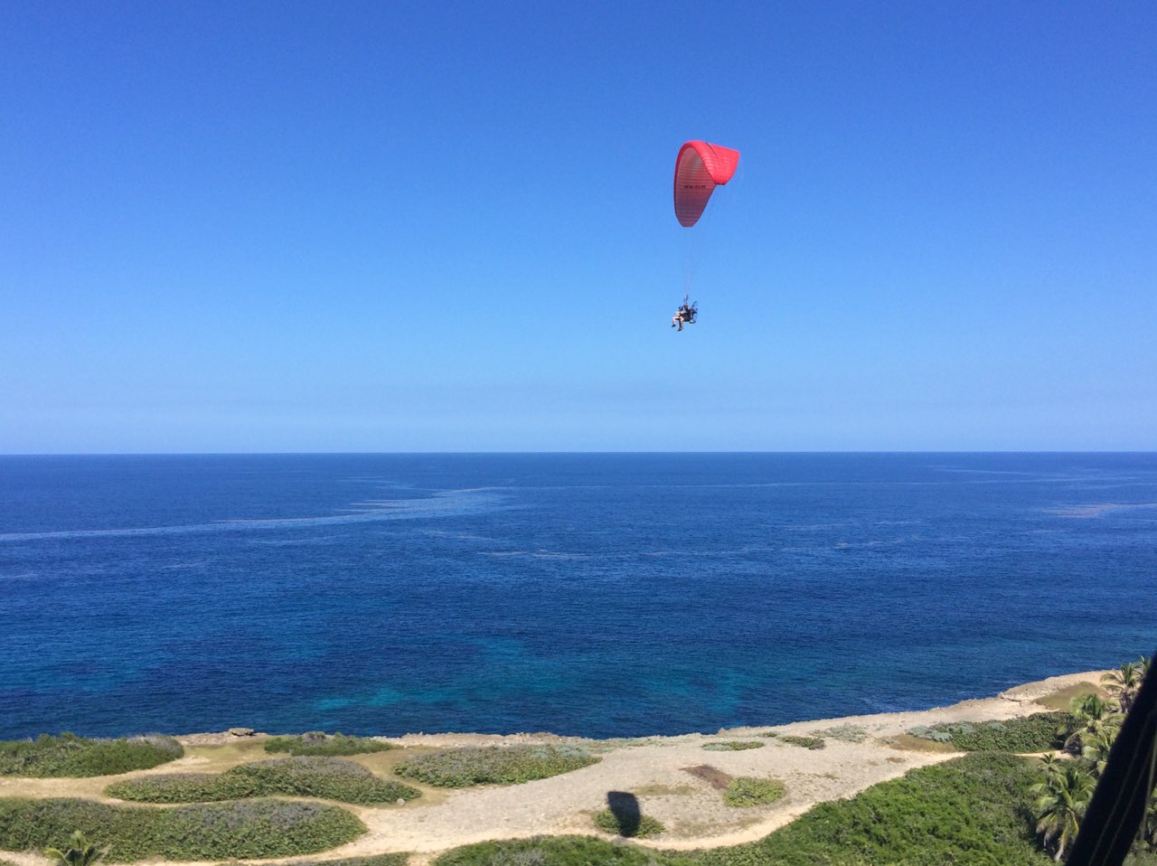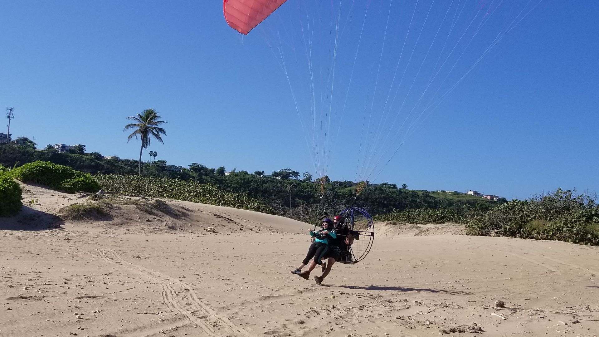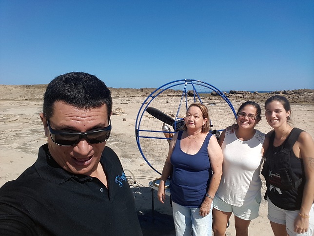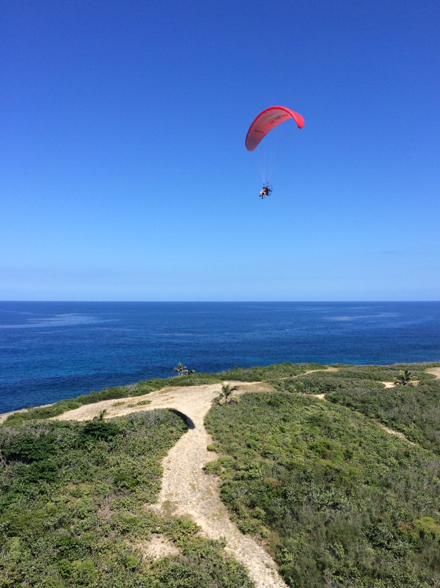 Luis managed to make the flights of Mariana, Reuben, Ariana and Karla without major problems. All were light people and ran strong to earn their flying. Then it was the turn of Miranda, Ryan’s wife, who had never flown and finally had a great experience in the fly. She took spectaculars photos of the area, including an enormous Manta Ray floating in the area of Jobos Beach. In the case of Norma, it was complicated because she could not run much and after an missed attempt we ended scheduling the flight for a day with stronger winds conditions. After that, the turn was for Marcos. He managed to run great with Luis on the second attempt to go flying. The route was to the mountains to feel the thermal activities of the day. Later on the day we had to postpone Jossie’s fly due for necessary adjustments with the paramotor.