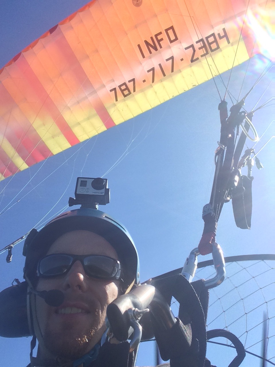 In the case of Ryan, he had previously coordinated his visit to fly with the Kamikazes Team. And today was the day, and what a good day it was enjoyed! After a chat with Luis Ruiz verifying that he had everything in control, as his PPG2 License and level kiting a paraglider. Ryan rented a SkyMax Moster paramotor together with the sport paraglider BGD Luna. With that combo, he was flying practically all day. Ryan later told us how different it is to fly in Sea level conditions with laminar winds, versus what he frequently flies in his home state of Colorado, USA. at above 10,000 feet above sea level and many times in turbulence conditions. And not to mention the change in temperature, here flying 75 – 80 degrees, while USA at the moment is covered with winter storms.