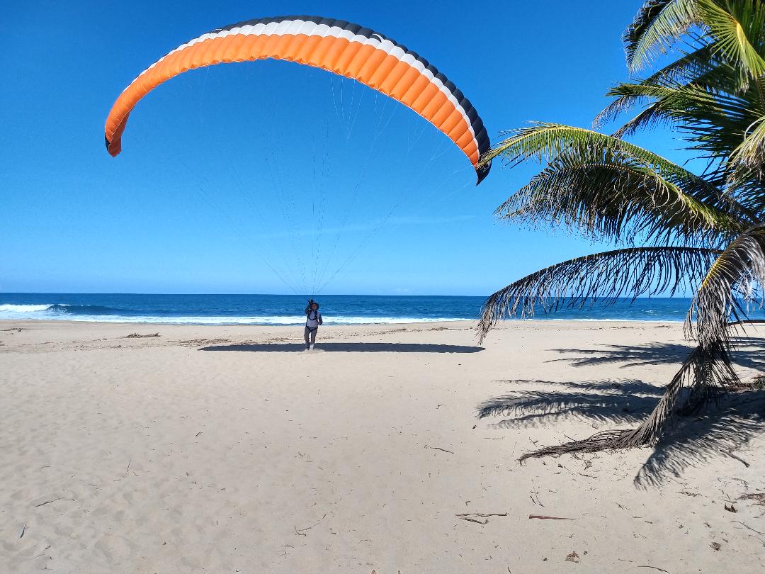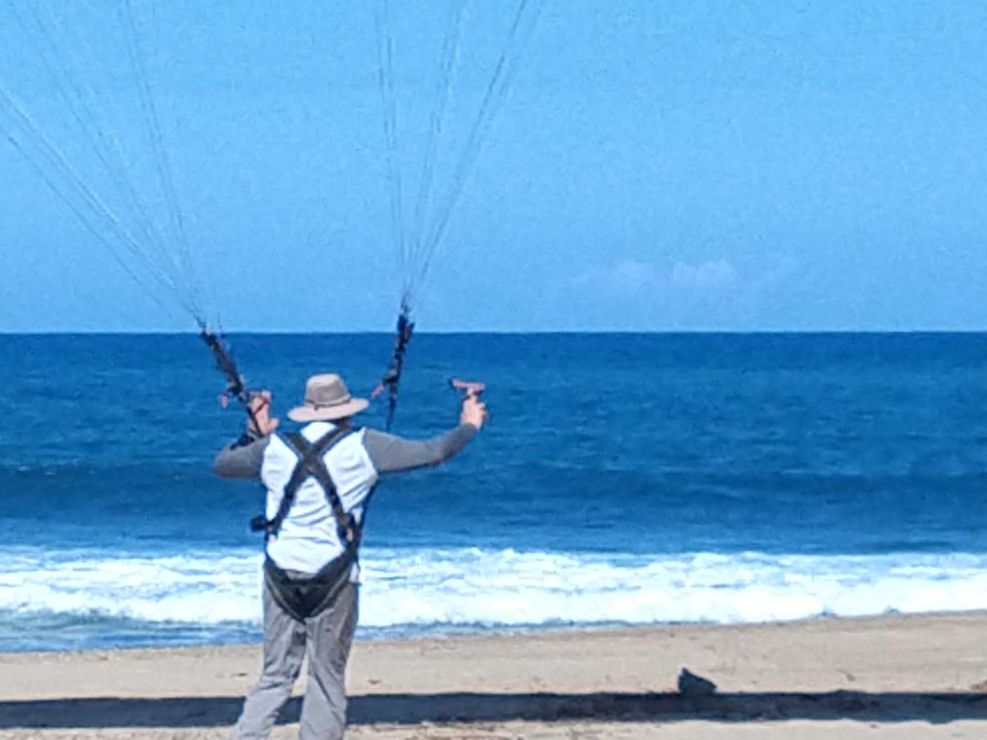 After verifying that at least we had enough wind for the takeoff, we assembled the equipment and prepared Edgar to fly out with Luis. Omar for his part also prepared his equipment, but with another idea. He will be going in a “cross” flight to the Colon Statue located at the boundary between Arecibo and Barceloneta. Alex on the other hand, was practicing inflation with his paraglider on the way to fly with us next Saturday.