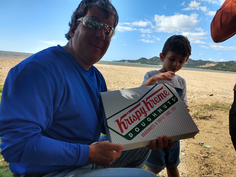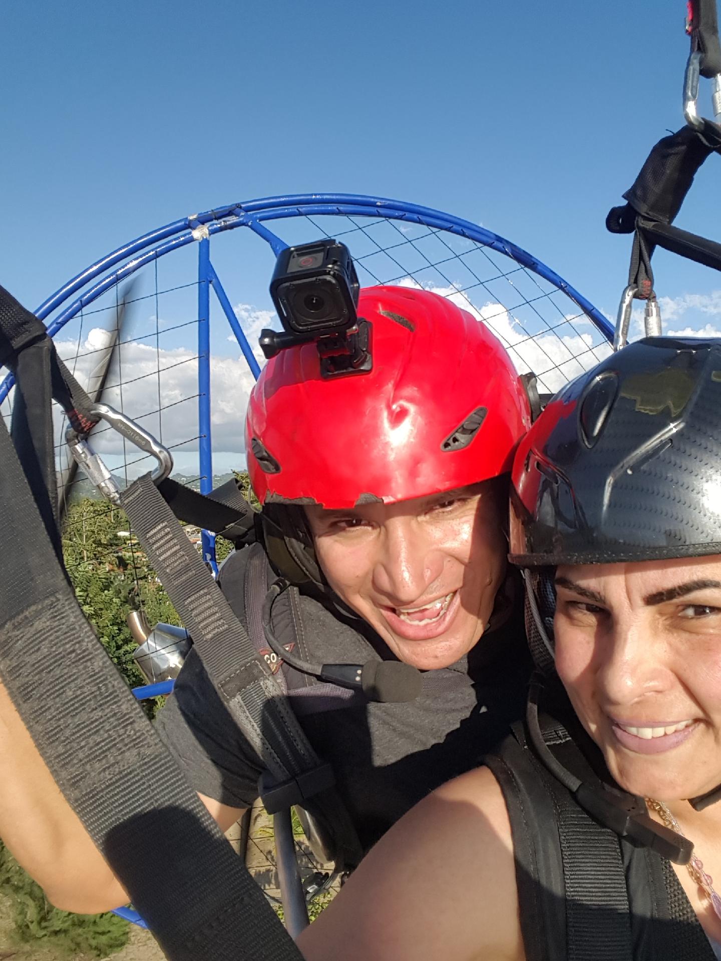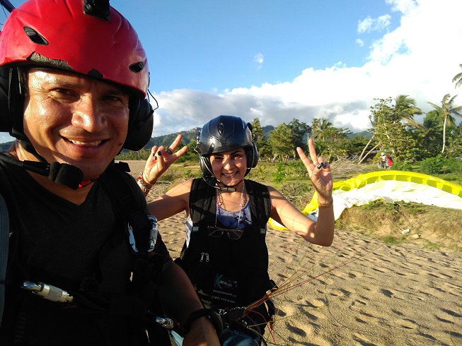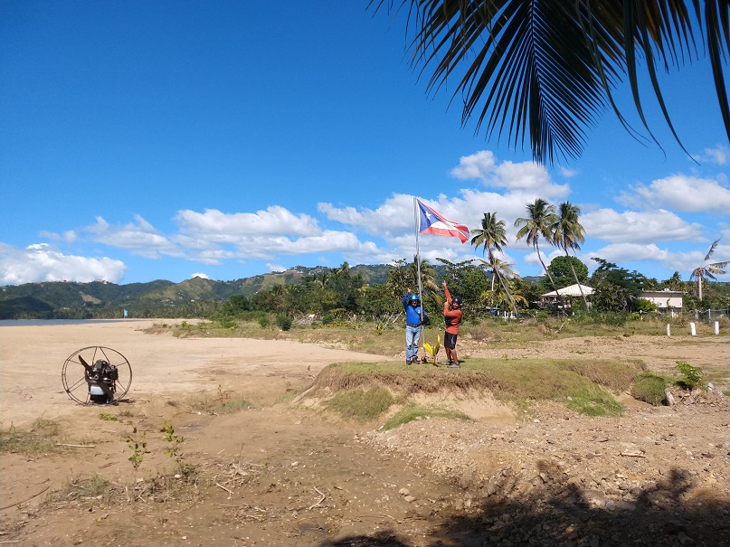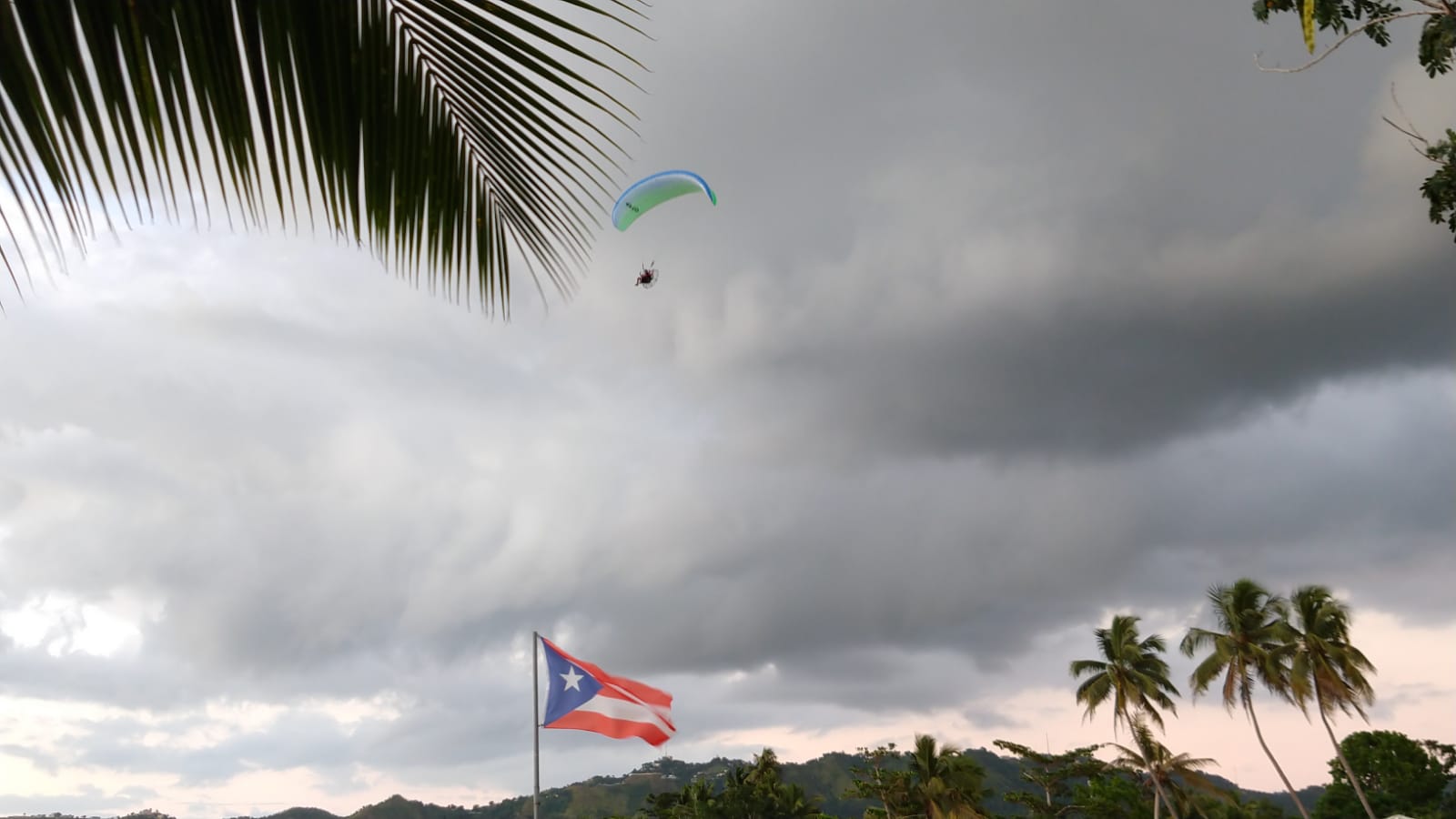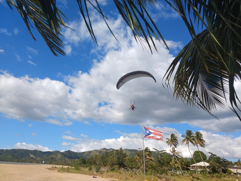 The wind started to rotate, as expected, from the west around 11:30 AM, and fortunately it stayed out of the West all day, until 6 PM! Luis and Chey left early to fly to Mayaguez, to the area known as “El Pulguero”, that was full of people until noon. Later, they were joined in the flights with David and Dimas. We spent the afternoon enjoying an excellent flight climate. Luis even made a passenger flight to the young Betzy, who lives in Cleveland, Ohio, and she enjoy and love the experience of the paramotor. The flight route from Luis take Betzy to Mayaguez and all the coast. Berto Garcia also flew around us with his Quick Silver plane.