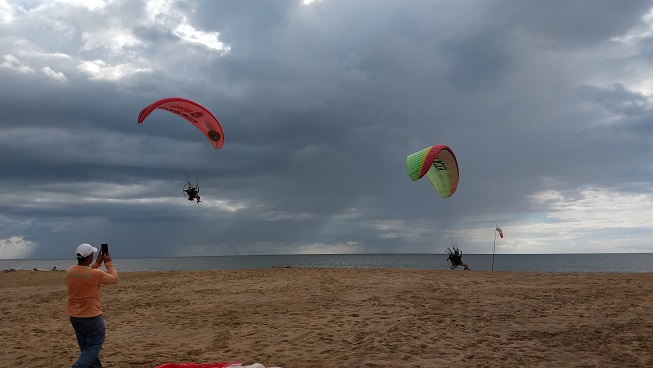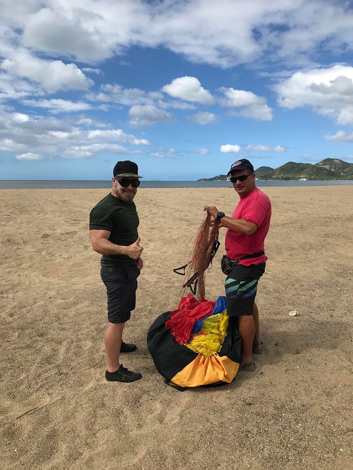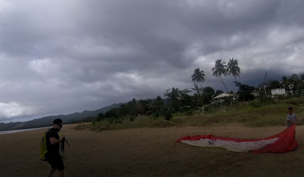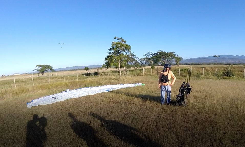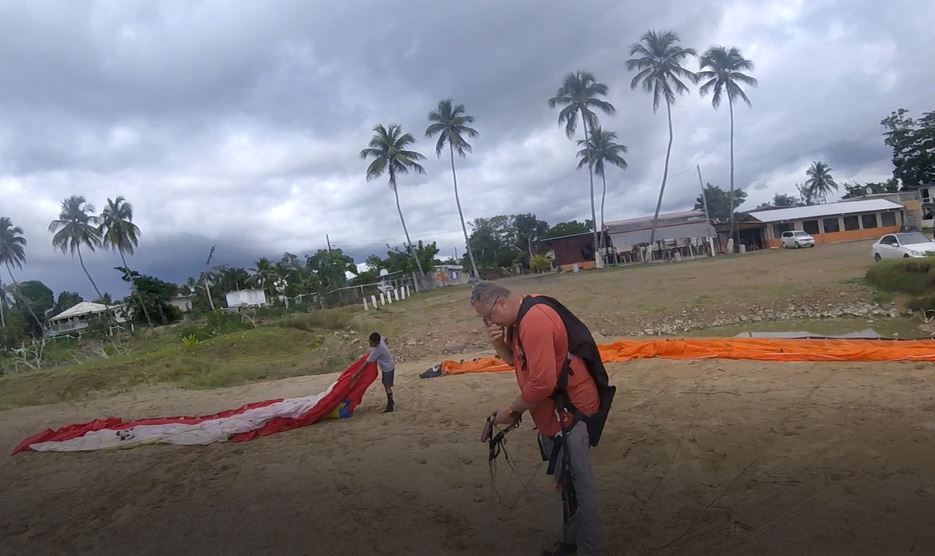 We started the theoretical training of Jorge and Alex was kiting his paraglider. The weather was bad and some heavy rain made us stop our practices. Once the rain finished, the weather stabilized and we began to receive the traditional wind from the West that always reaches that area. So, the practices of Alex and Jorge were much better. In turn, CC and CC Jr. took the opportunity to fly together in the surroundings. Berto on the other hand had taken his son Michael to the area. Michael kite his paraglider and also helped the pilots in their practices. A rain came around 4 PM and with this we finished the day’s activities. Not bad for a day that did not promise much, and we had a new student and a new pilot in the air.🙄🙄💪💪
