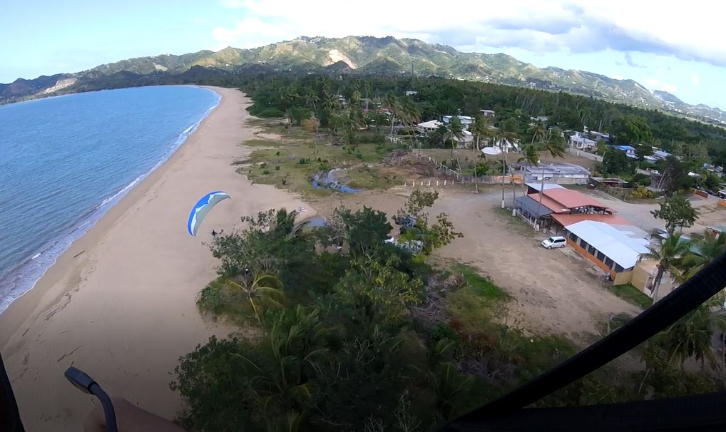 David, Gregory, CC and Esteban went flying around. Esteban achieved his fifth flight of the weekend, enjoying his new equipment (SkyMax EOS 100 paramotor and paraglider Apco Lift EZ-R.) In the case of Eduardo, Gregory and CC, they left together in the direction of Rincon. They flew all the way to the municipal Beach, passing through very beautiful tourist areas and places that are still very affected by the passage of Hurricane Maria one year and a half ago. From the videos, we noted that much of Rincon has run out of beach coast, the sea is hitting the buildings. This suggests that there could be something illegal due to the maritime land area that should be left without construction.👀
