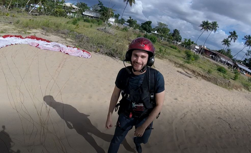 Meanwhile Alex, who was determined to fly today, made a good practice. He was about to go flying but in his attempt he had run out of track. He aborted very close to the beach and the paraglider touched the water, so we had to help him out. In the end it was a good practice for Alex who is encouraged to try again to correct the takeoff technique. Luis, was making some Tandem flights to Franklin and Yurac, they traveled from San Juan to live the experience in the paramotor. Both were very happy with their experiences and will be in touch for futures flights.