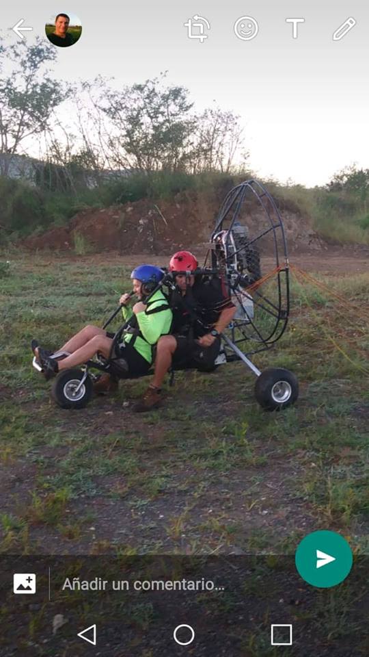 Now it was Abdiel’s turn to fly alone. Luis gave him all the rigorous instructions, together with the communication system and the equipment was ready. Abdiel did excellent, the paraglider went very well and he began to accelerate the paramotor. In the end Abdiel stop running and did not release an A band, causing the paraglider to lose its perfect form. He later indicated to Luis that he did not feel confident and preferred to go as passenger with Luis in the Trike. Luis made the fly and while this was happening, Patrick took advantage to practice with a paraglider on ground.