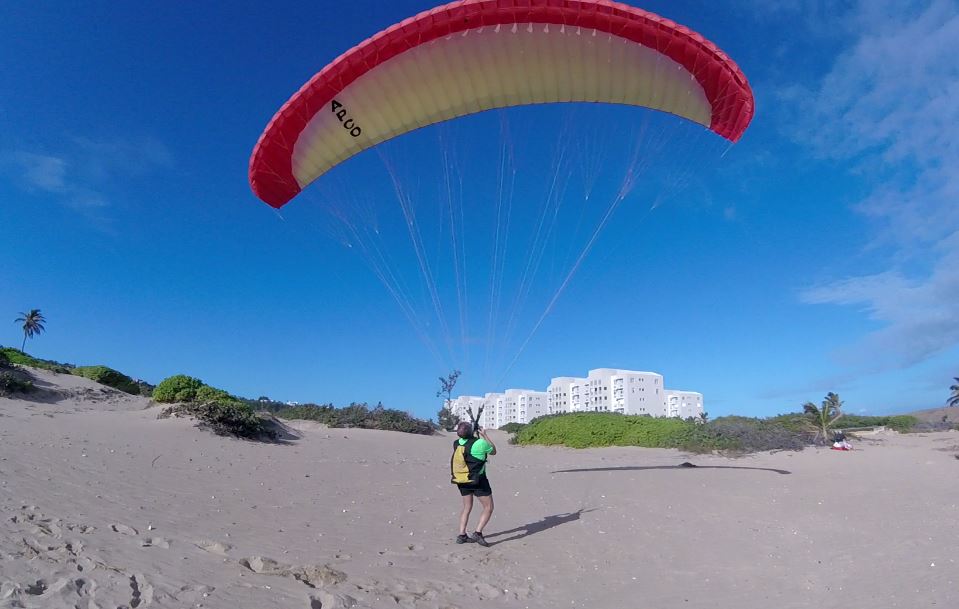Today Luis Ruiz went with Patrick Wendt to the north area, specifically to Villa Pesquera of Isabela. The idea was to practice and fly if, indeed, the winds had decreased in intensity. When we arrived at about 7:30 AM we found suitable conditions to practice. So, we took advantage of with Patrick so that he could continue polishing his skills. He had indicated that he was not comfortable with the “Reverse Launch” method. So better keep practicing.