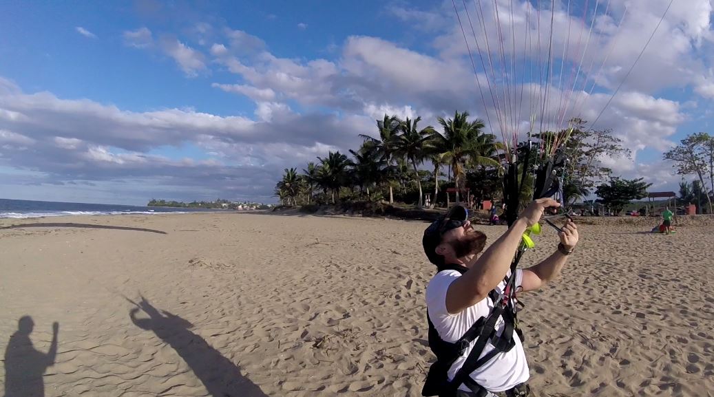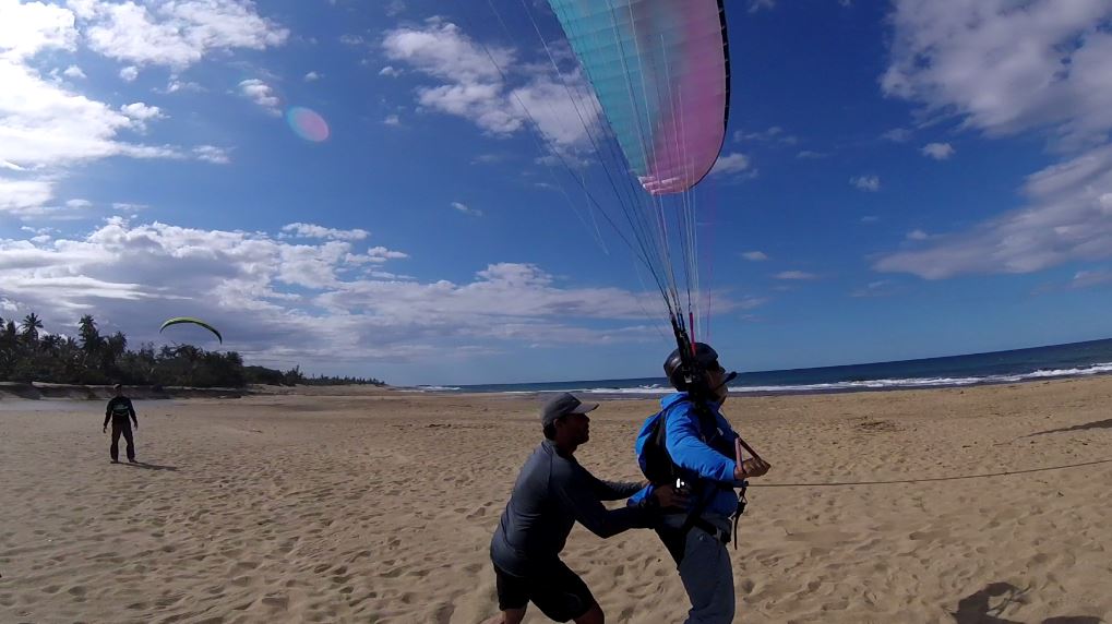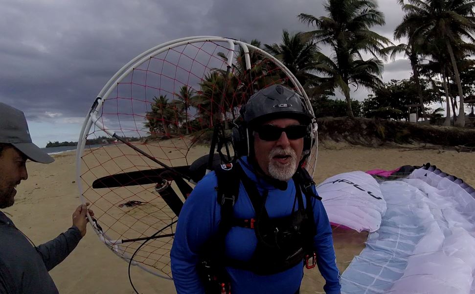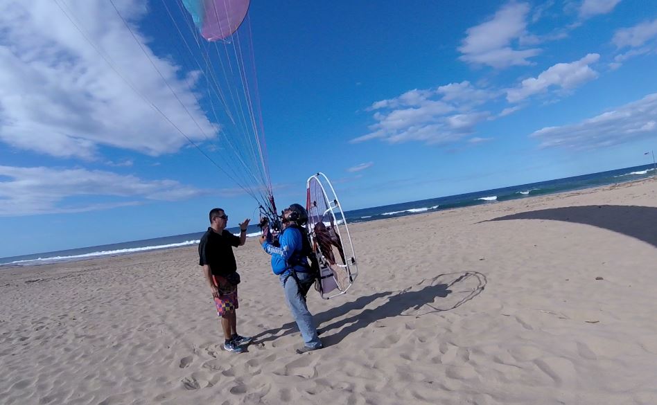 During the past few days, the new student of the Kamikazes Team, Roberto Machado, had coordinated intensive practices of the paramotor sport. The practices were conducted by Carlos Candido Rodríguez in the area of Machos Beach in Ceiba. After several days of rigorous practices, the long-awaited day for his possible first “solo” fly arrived.