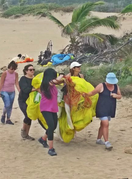 In the meantime, the members of Team Kamikazes flew all day at will… Eduardo, Ian, Gregory, Omar, Pablo, Juan Carlos, Chey and Michael, came and went flying by routes that reached the Guajataca Tunnel in Quebradillas to the East, and to Villa Montaña and Shacks Beach to the West. The students Jason, Darrell and Pin Pin were kiting the paragliders in the process of joining the Team in the flights soon.