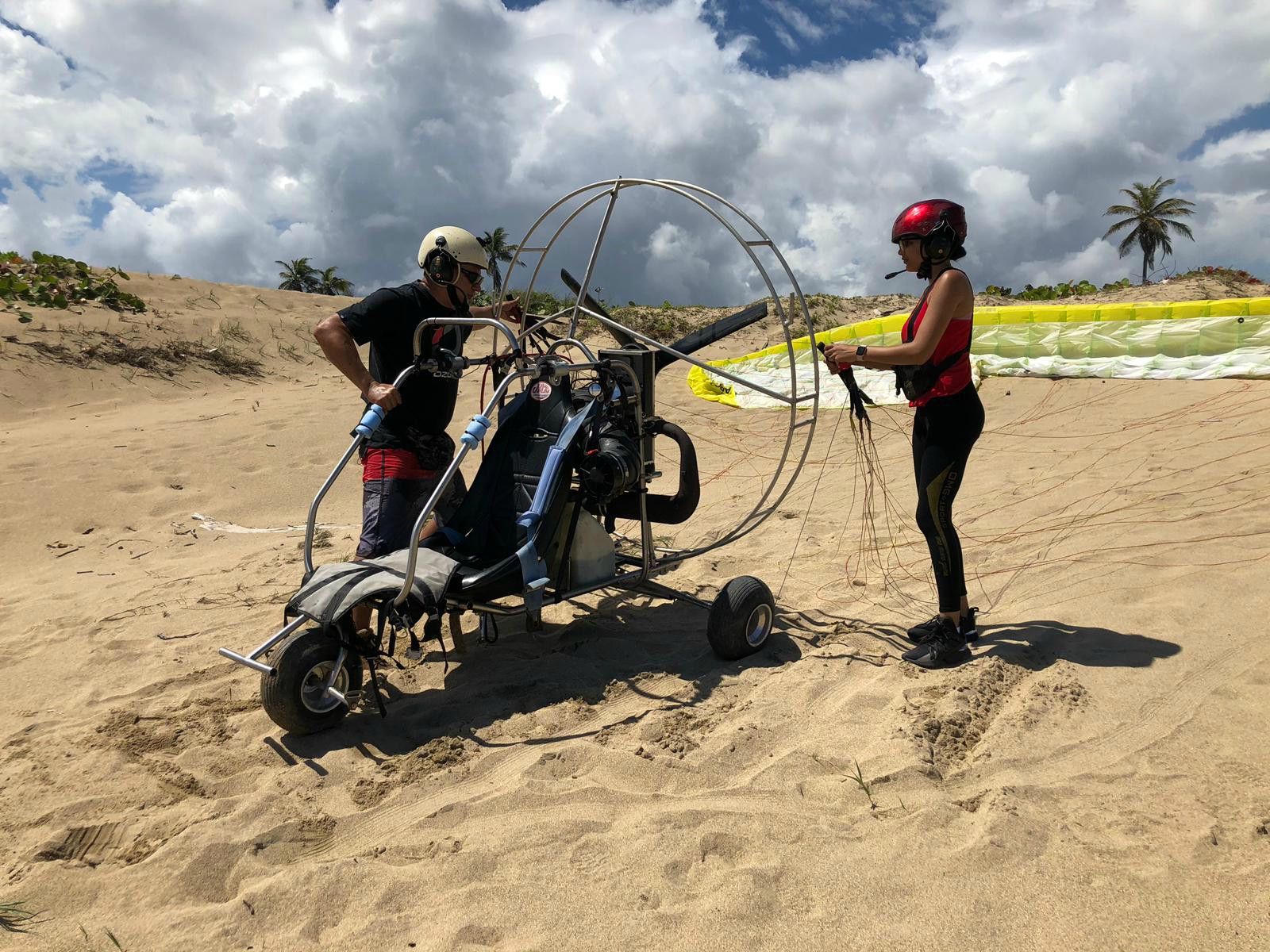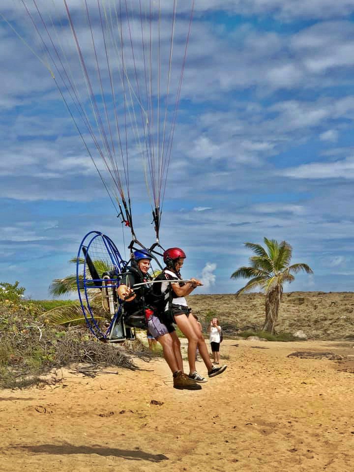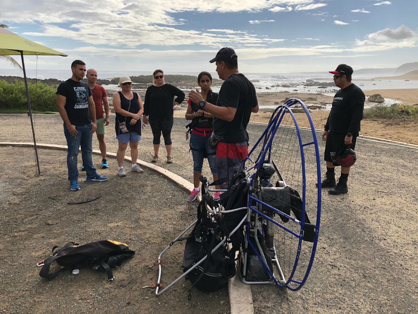 Today was an “epic” day of flights and adventures of the Team Kamikazes Paramotor Puerto Rico and that apart from having an excellent flight climate. We had the scheduled visit of the group of Adventurers 100×35 commanded by Roxana Delgado. Those who came to live their experience of flying in the paramotor, the closest thing to the flight of birds.