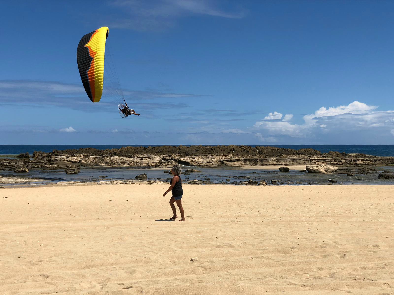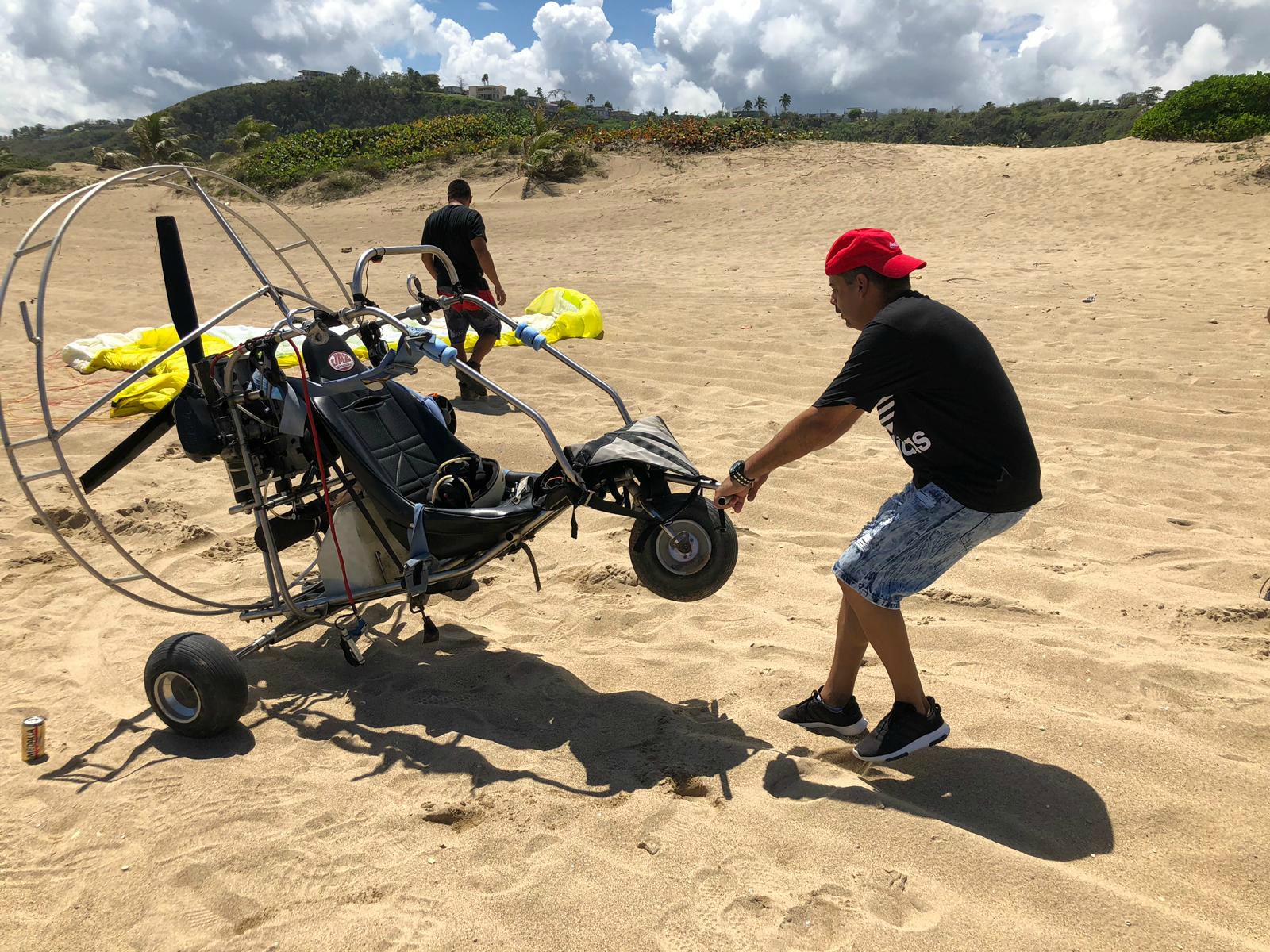 The meeting place was Villa Pesquera of Isabela. As we mentioned, we had excellent weather to fly all day. Roxana arrived with a group of fourteen (14) passengers from very early in the morning. Luis Ruiz had hired that day the experienced pilot and friend David de Jesus to help him flying some of the passengers. We had two (2) full equipment available to do the jobs. As a Plan B, the Trike “El Llanuro” is ready, although its wheels do not run well in the sand, but it could do the job. We also had the Kamikazes pilot, Michael Diaz and his father Papo, helping in everything that was necessary so that everything would run in harmony.