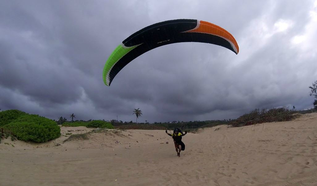 At about 5 PM we were finishing the flight activity. A huge clouds and rain approached us from the inside of the island. Several pilots were taking advantage of these wind currents to fly from the Cliff without an engine. This was the case of Ivan, who ended of the afternoon landing at Villa Pesquera to share a moment with us.