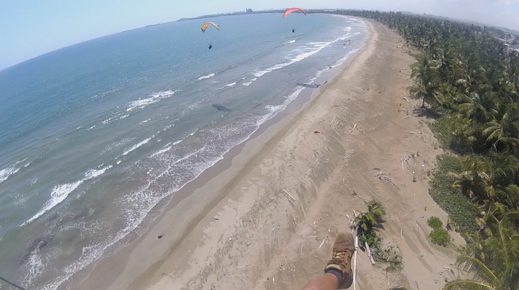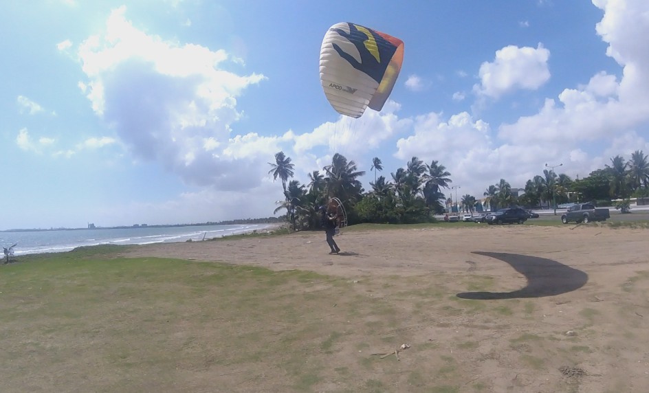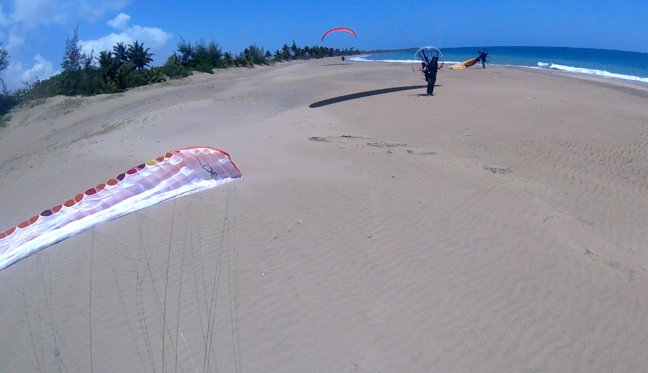 Once there, we prepare the flight equipment. Jeff would use a modern Fly Products Atom 80 paramotor with Apco NRG PRO 18.5 m paraglider, while Luis used his SkyMax Moster with BGD Luna 22 m paraglider. In the meantime of preparations Antonio and Eduardo arrived from their flights. They had flown to Dorado about 13 miles away and they were back.