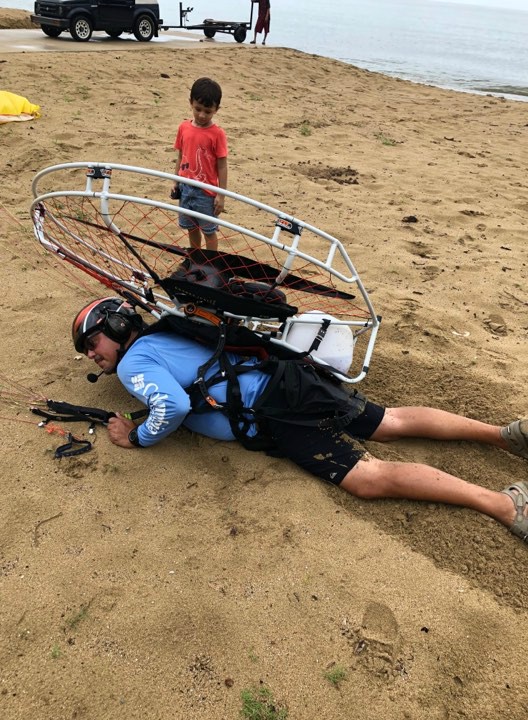 In the afternoon, at 4 PM, it finally got good to fly. So good that there was not wind at all😲. So to be able to fly, you had to earn the flight. You had to run and keep running until you could take off. The only one who was comfortable with this condition was Chey who is taking off without major problems with his new and ultra light SkyMax Expedition Moster and Paragliding Apco Lift EZ.