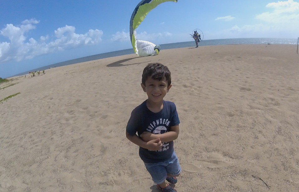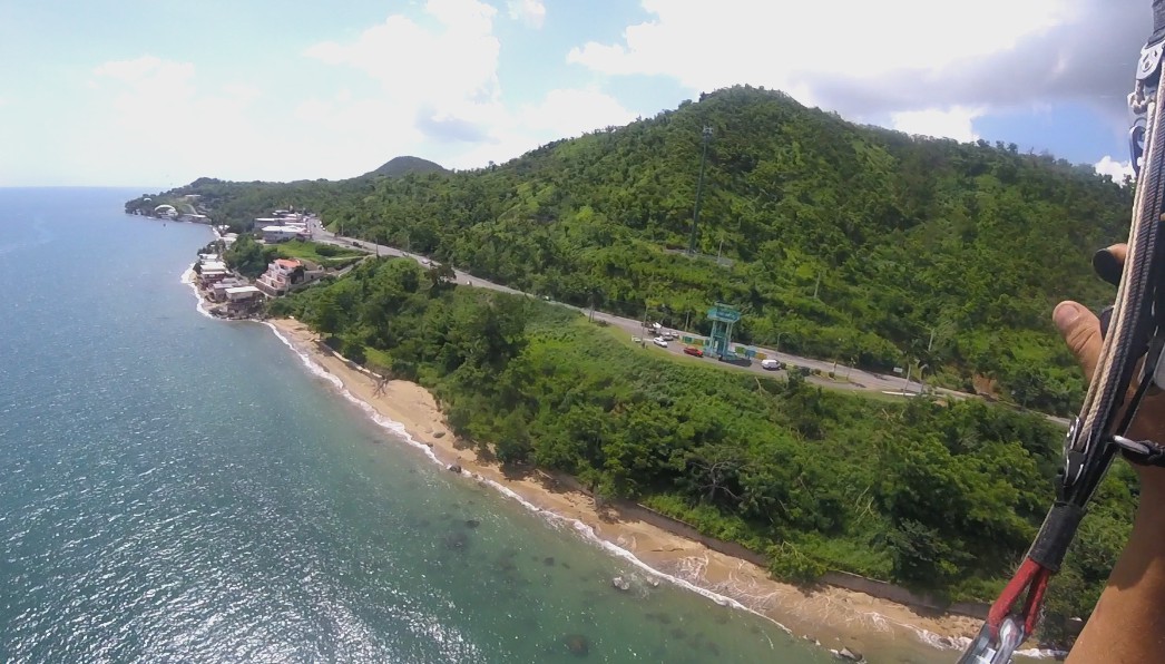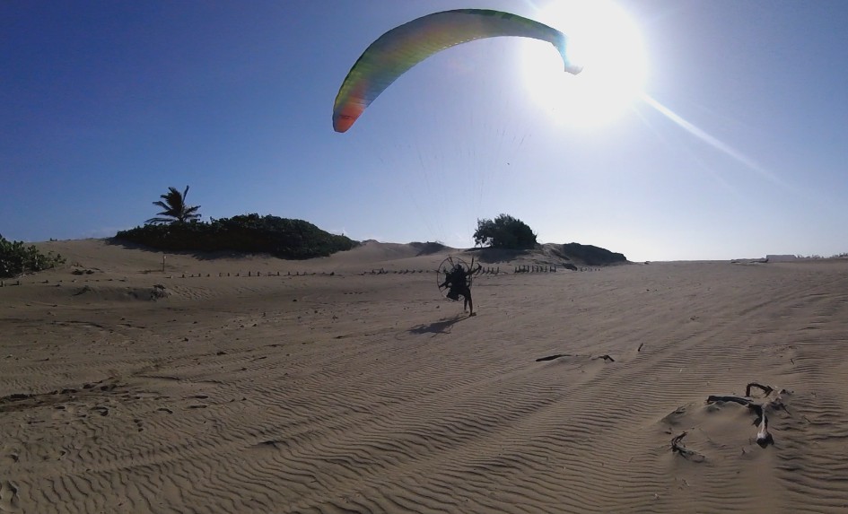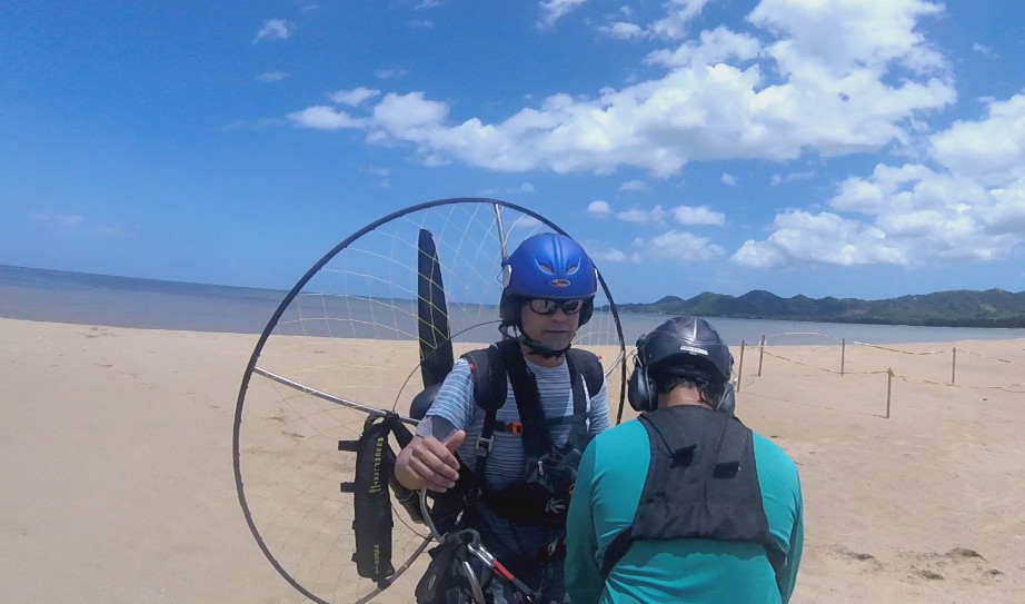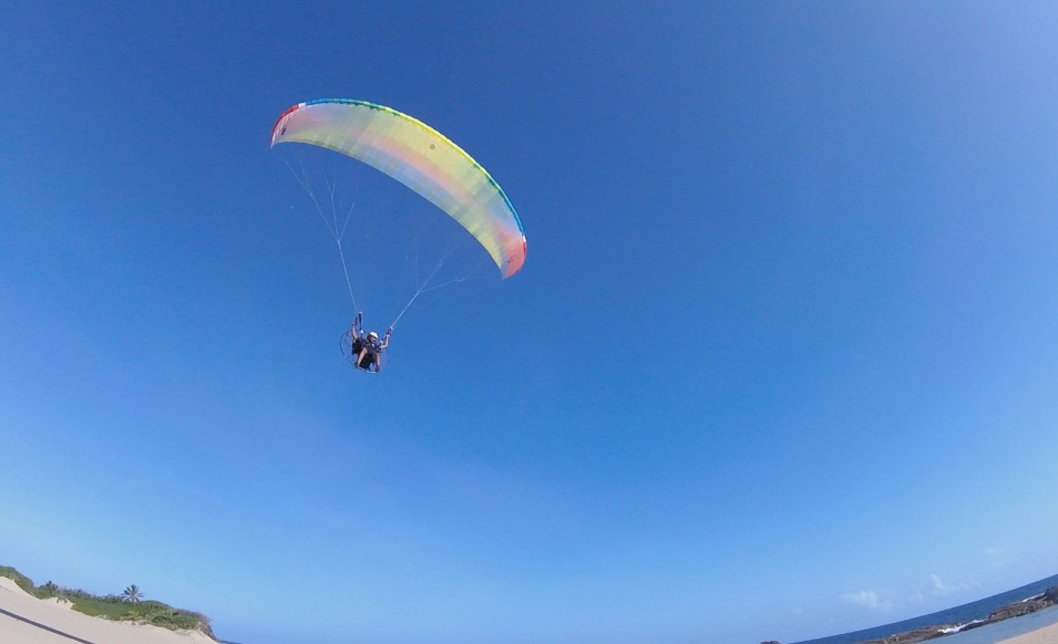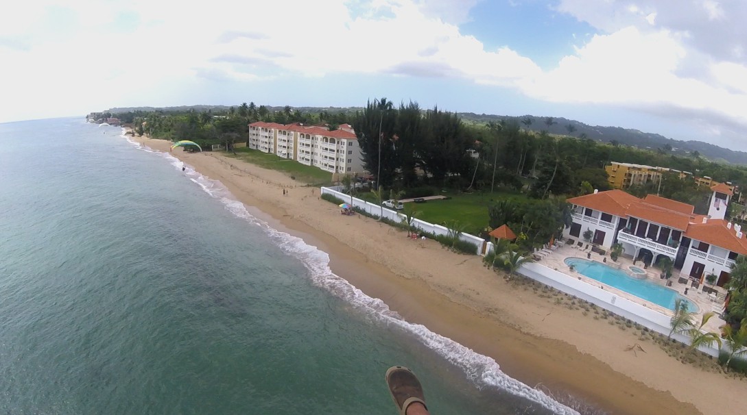 When we got to Isabela, the winds were good, and we calculated that we would have a flight window of an hour and a half before it got windy. Things were not so easy. The paramotor of Deron that was mounted p last night was giving some adjustment problems. So, Luis gave his personal paramotor to Deron so he could take a flight around. And while Deron was flying, Luis was adjusting Deron’s paramotor. He managed to fly the entire area between Villa Pesquera to Jobos Beach, and it was very good for him to get to know better his new paraglider BGD Luna 2.