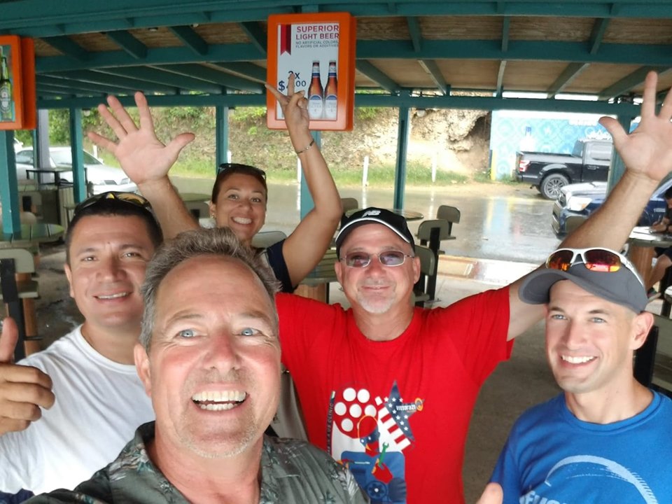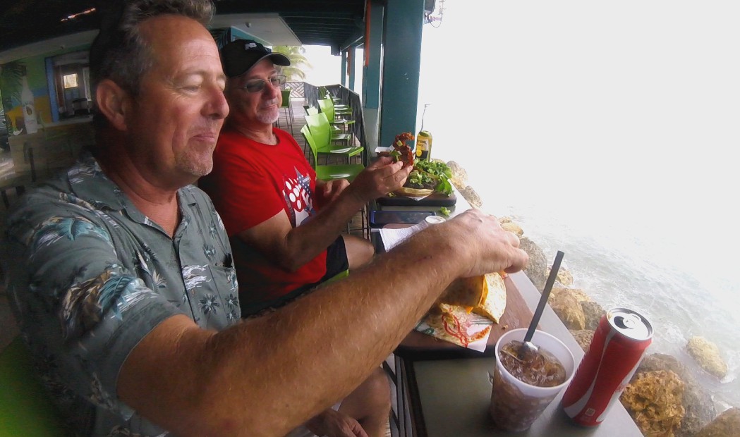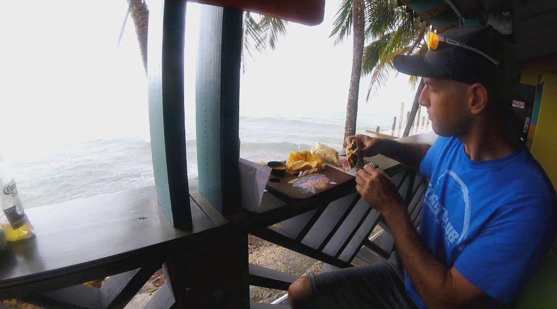 After an hour of flight, the clouds arrived with some rain and forced the landing. We took the opportunity to go lunch at the beach in Aguada. Under heavy rain, we have a great time saying goodbye to Evan who left for USA later in the day.