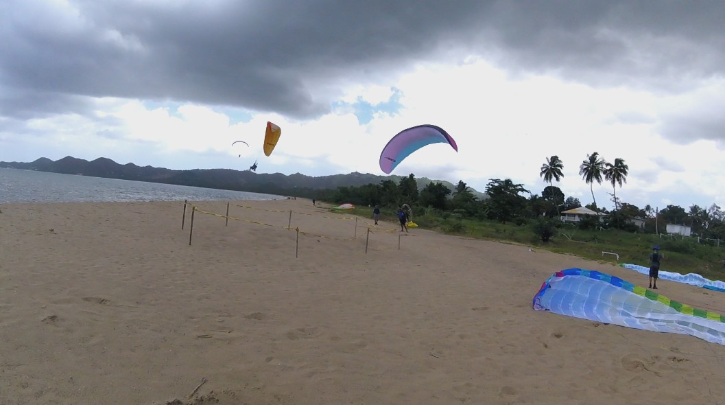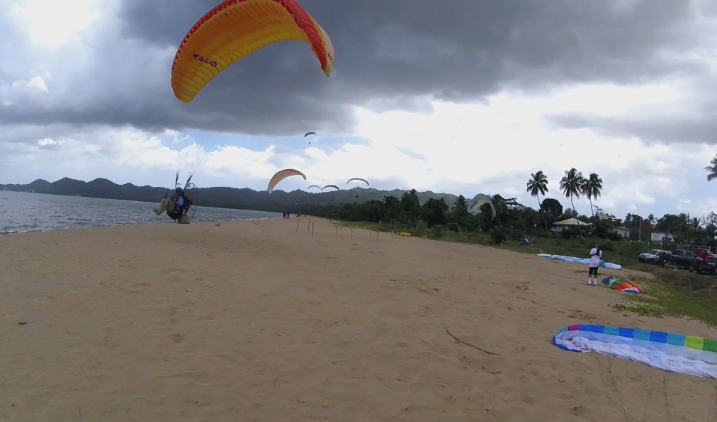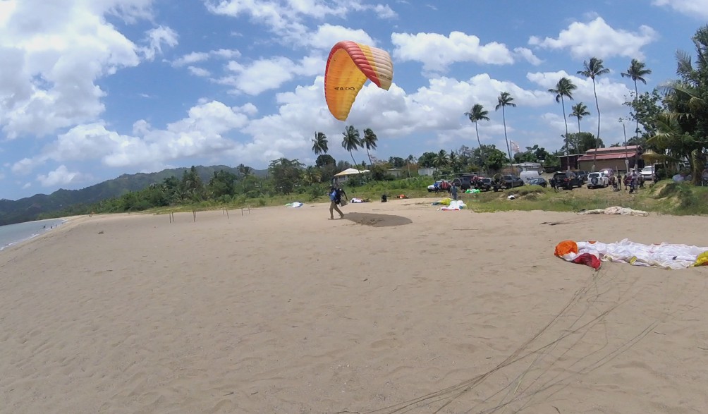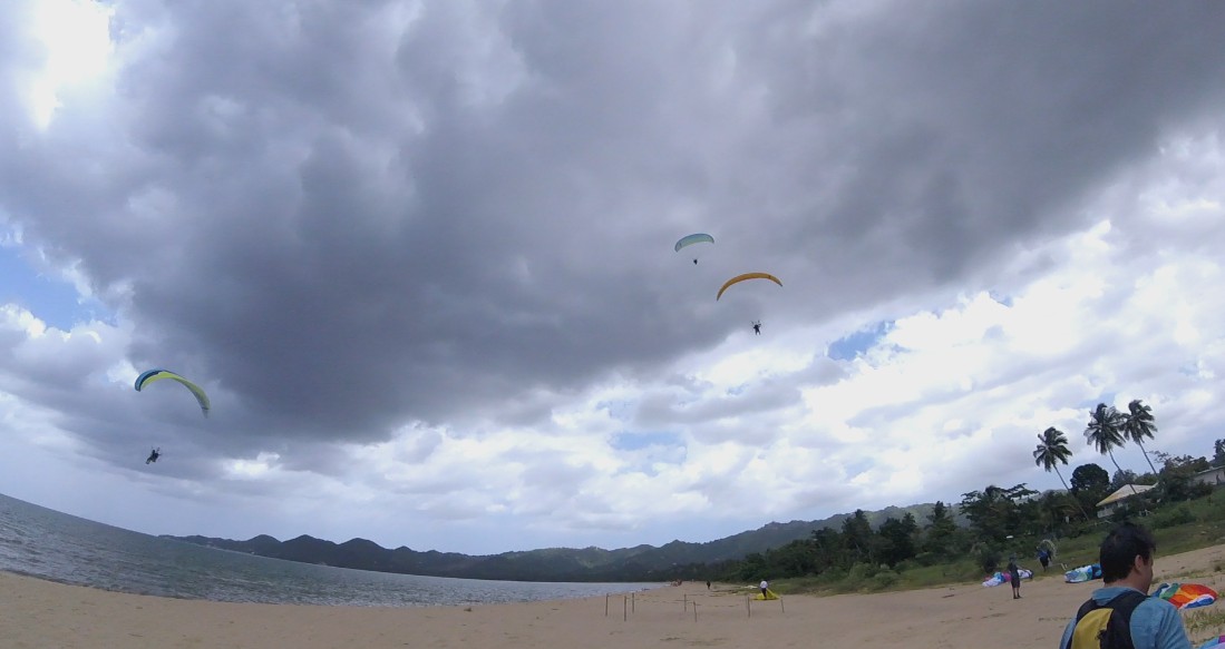 Around midday the wind finally changed from the West, and with that change all the pilots started to fly. Pablo and Eduardo were the first to launch, and they notified the group that they need to wait, since they felt that the air was very inconsistent upstairs. Half an hour later, with more stable winds, they left to fly, Deron, Omar, Gregory, Juan Carlos, Pablo, Eduardo, Ian Darrell, London, Ernest, Randy and Chey. As you imagine, that was an air traffic. It was delicate to turn near the take-off area since they all flew very close 😲.