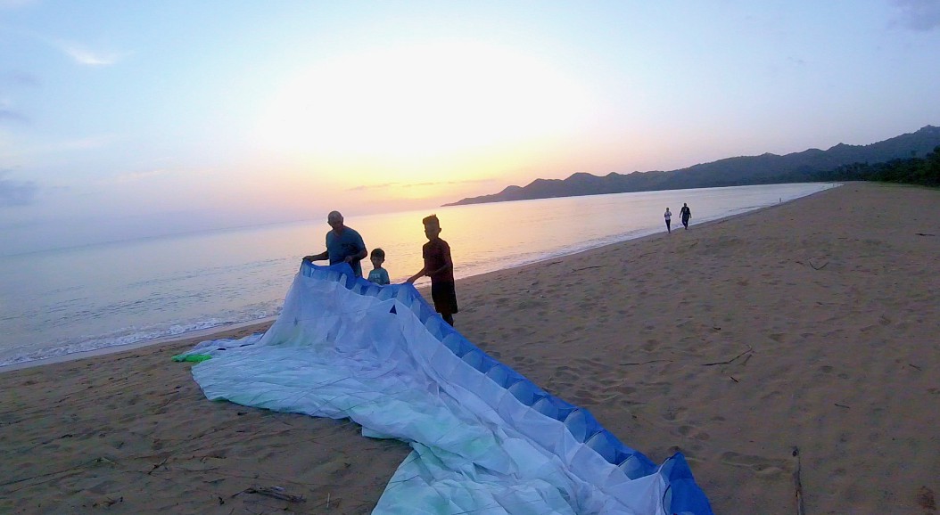 The younger kids Michael and Noah practiced inflation with the paragliding while they were watched by the majority. At the end of the afternoon the weather got good and Berto wanted to fly. This was assisted by several pilots but in the end it could not take off and between good times we finished the activity.