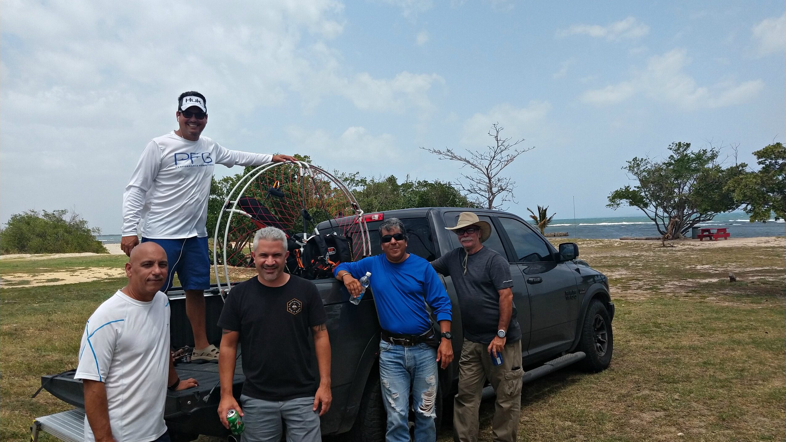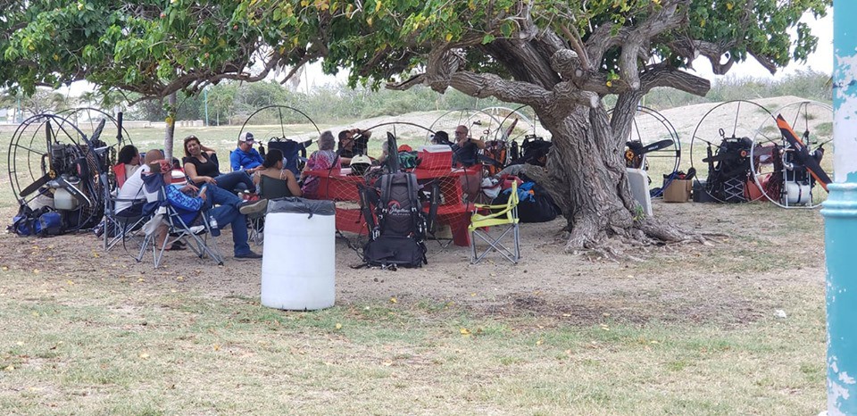 In the morning, despite having a sunny day (and Sahara Desert dust in the air), the only one who could fly was Luis. The wind was rapidly rising in intensity, and by 10 AM it was already at 20 mph with gusts of 28 mph … and rising. So, not more flying could be done in the day, at least in Ponce. Anyway we have a great time sharing our experiences as usual. In the meantime, it was nice to see “Tiza” and his family, as well as Esteban and Dannis, the Kamikazes pilots from New York, who arrived ready to fly. Sadly, today was not going to be the day.