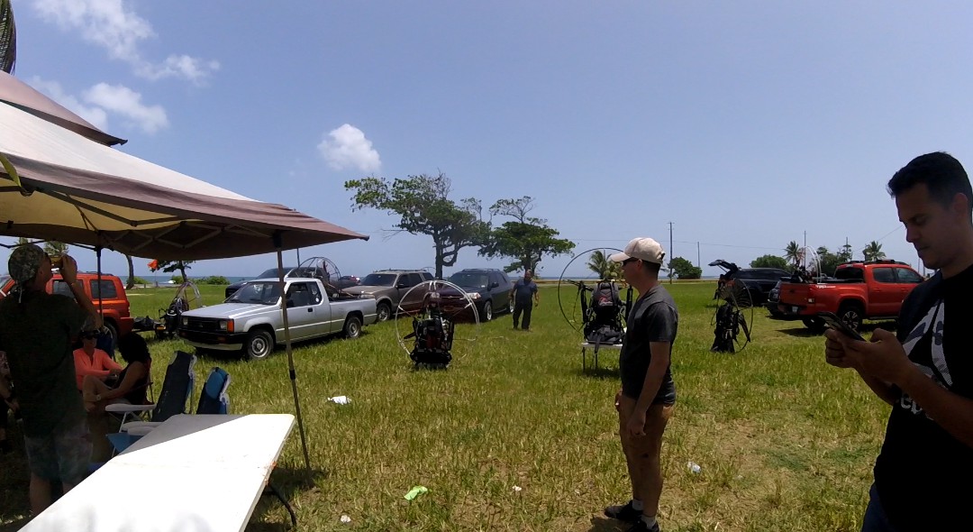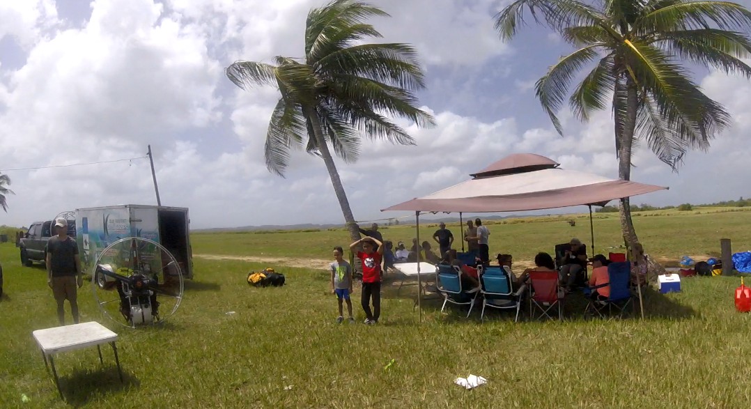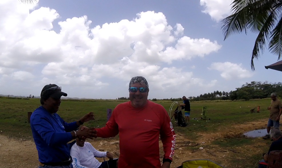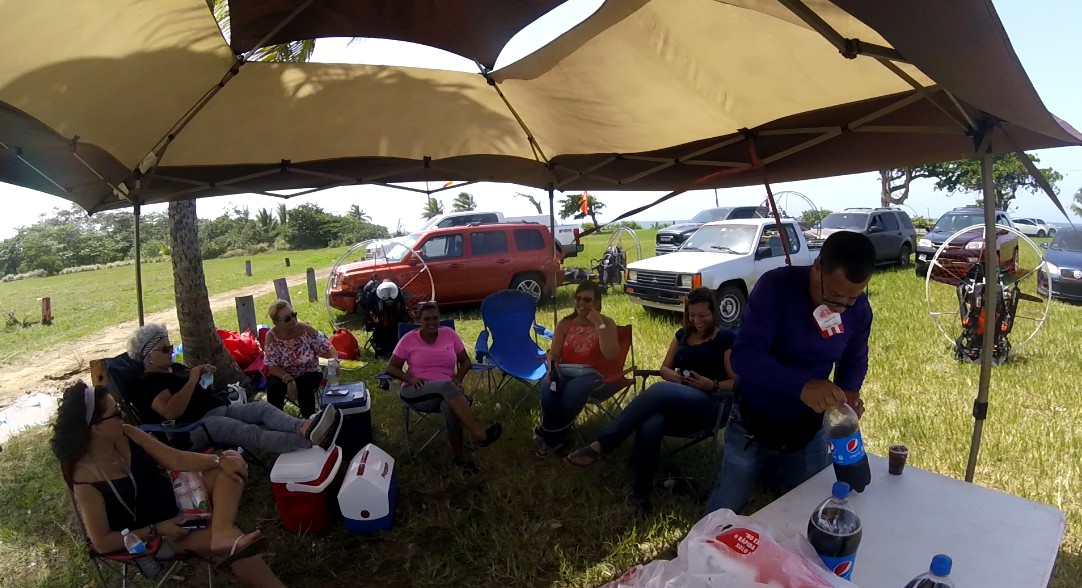 But, while we were seats and chatting about our experiences and future plans, the pilots Juan Carlos and Carlos Cándido appeared in the horizon FLYING😲😲😲… It turns out that they had met in Levittown, and from there they had flown all the way to Barceloneta. They reported speeds closer to 60 mph while flying downwind!!!