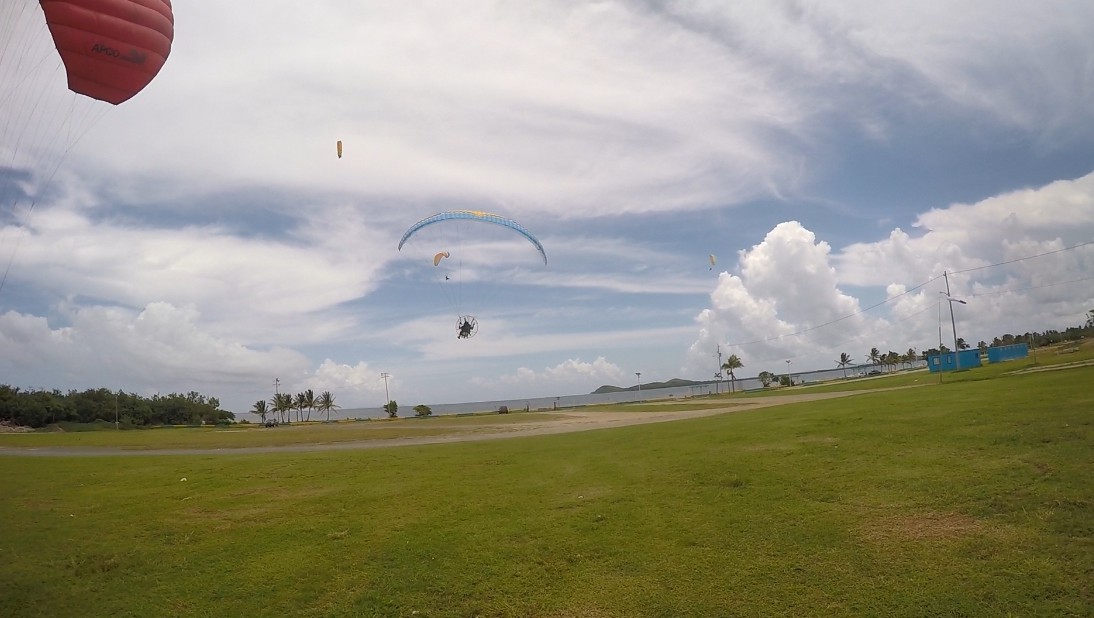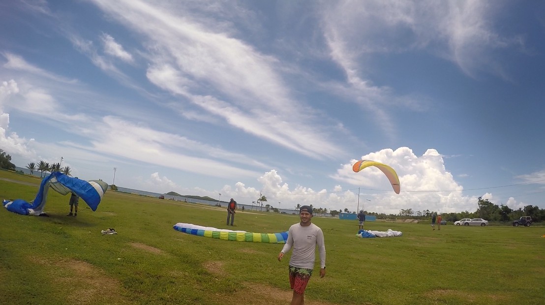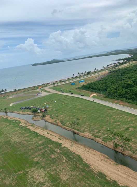 As mentioned previously, the initial meeting place was at the mouth of the river in Loiza. There we arrived in the morning and even took the opportunity to deliver a new paraglider to Juan Carlos, an Apco Lift EZ R. As we arrived, we observed that the intensity of winds was increasing. Luis went flying around, and although it was good at the time. This test flight ended up deciding the balance for us to move to Ceiba. Some rookie pilots may have had trouble flying in Loiza and that was not the idea.