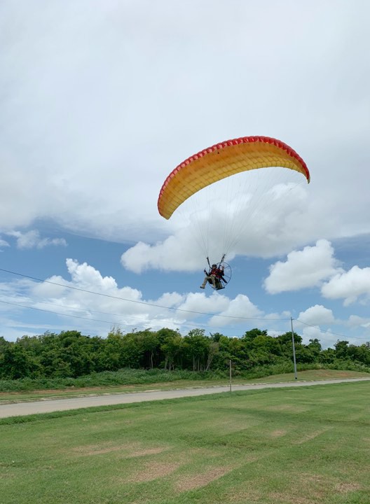 Once in Ceiba, we run into strong winds. While we settled in the area, CC Jr. had the idea of play with his “Kite Surfing” in winds over 18 mph. The only one to accompany him, but from the air was Luis making use of his Apco NRG PRO 18.5 meter paraglider. But this did not last long. It turns out that the winds were decreasing the intensity, to finally stay all day between 12 to 15 mph entering the East. Ideal to fly our paramotors. So, CC Jr. needed to fold his Kite Surf again 🙂.