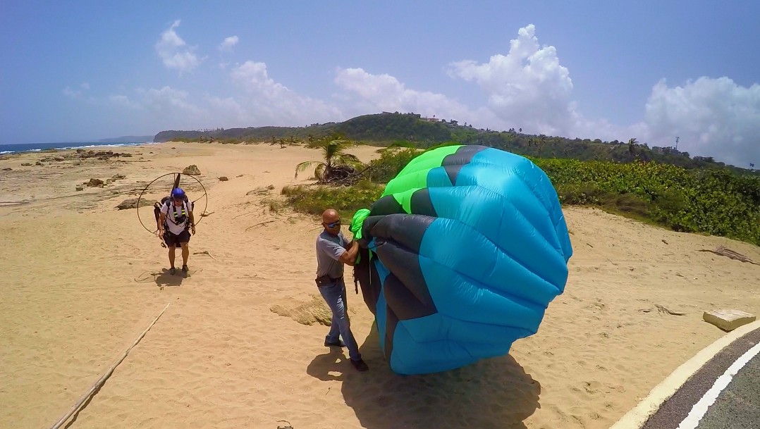 Ted Sowinski and Rubén Caro arrived with Luis Ruiz. Ted was looking for his third and fourth flight, while Rubén was looking for his first paramotor flight.It was a pleasant surprise to see Omar Román arrive, who came from Barceloneta to accompany us. There was also the young Ilka Soto, a native of Utuado, who thanks to a friend and former pilot Martín Hernández, had coordinated a paramotor flight with Luis Ruiz. Anyway, for a strong day, after Luquillo, we had quorum and more than that with good weather.