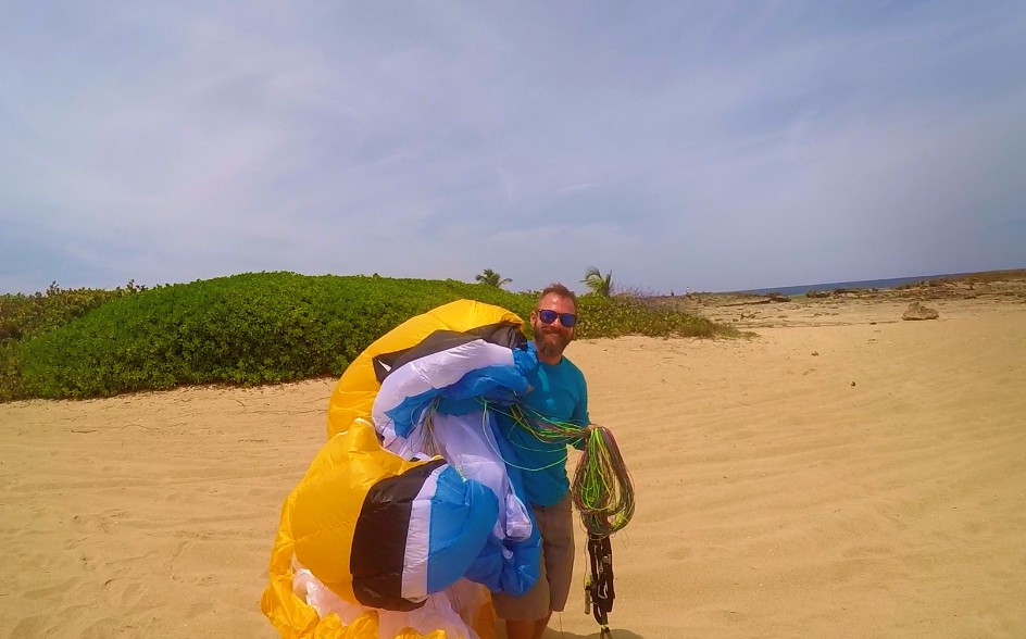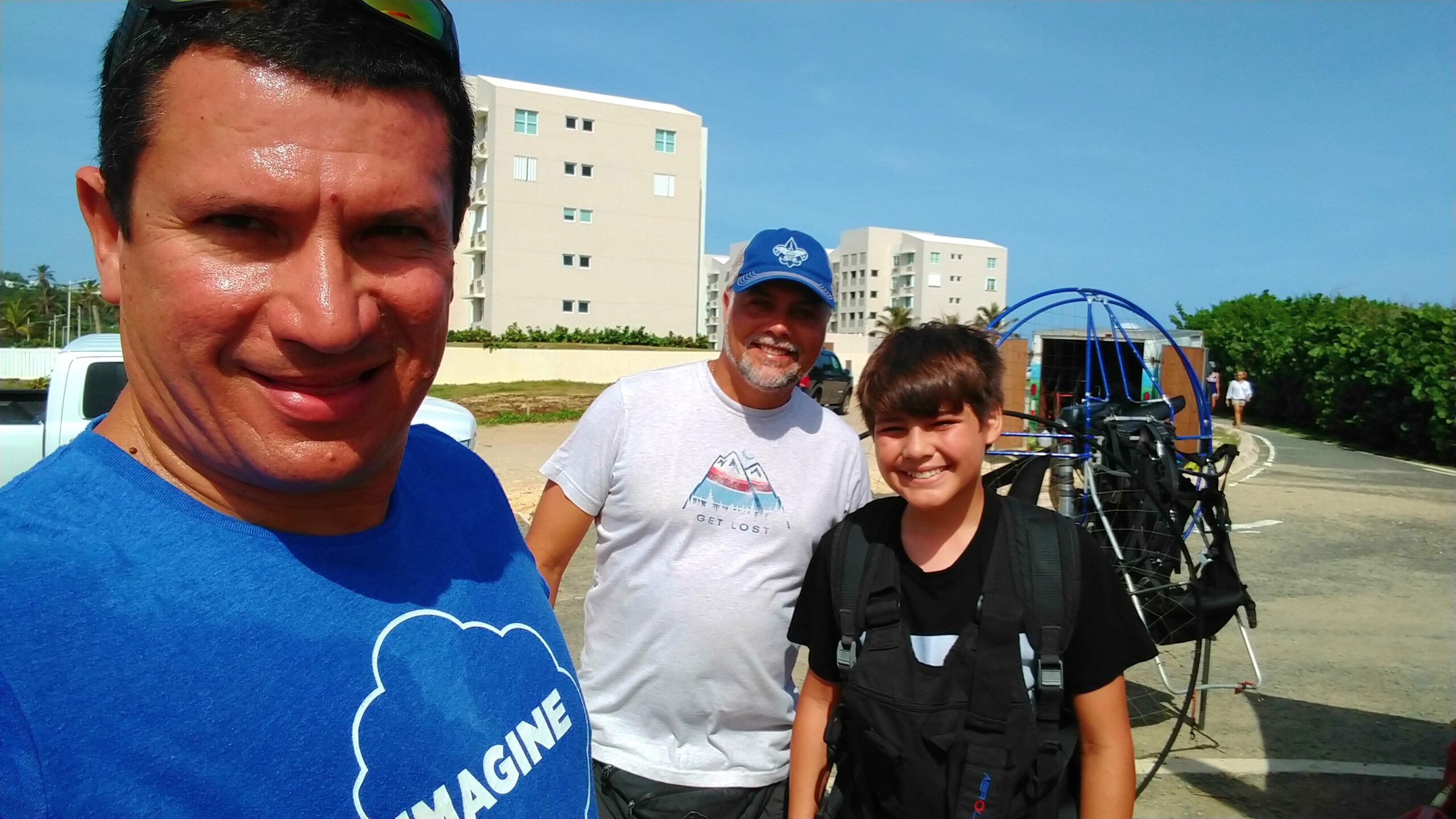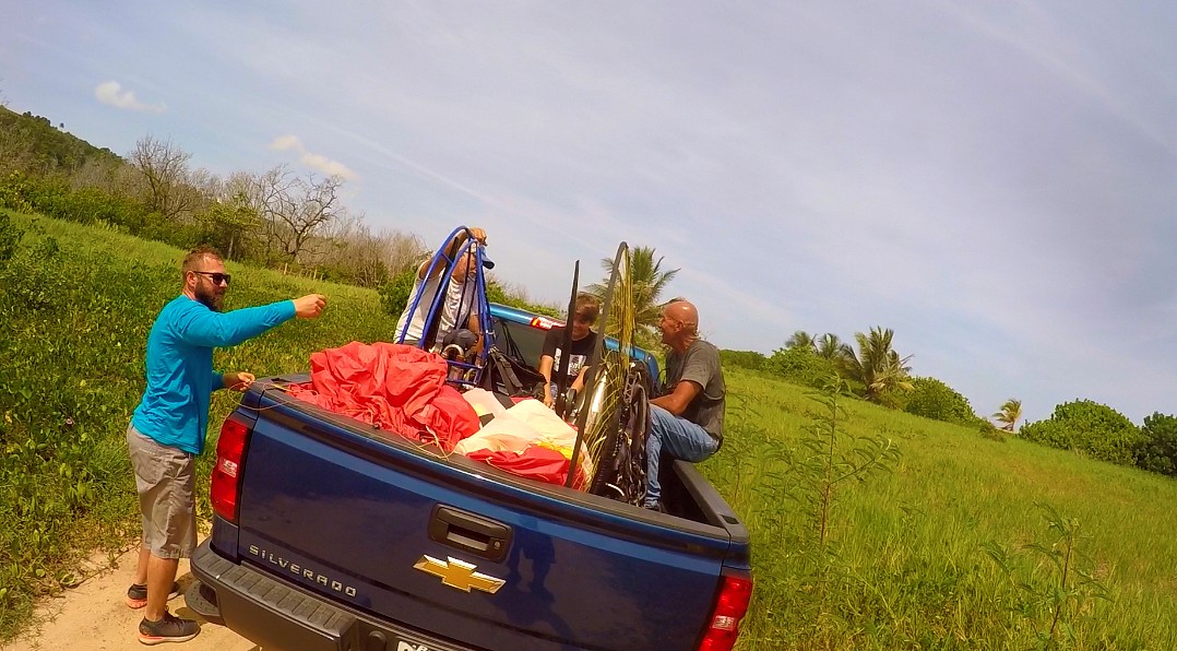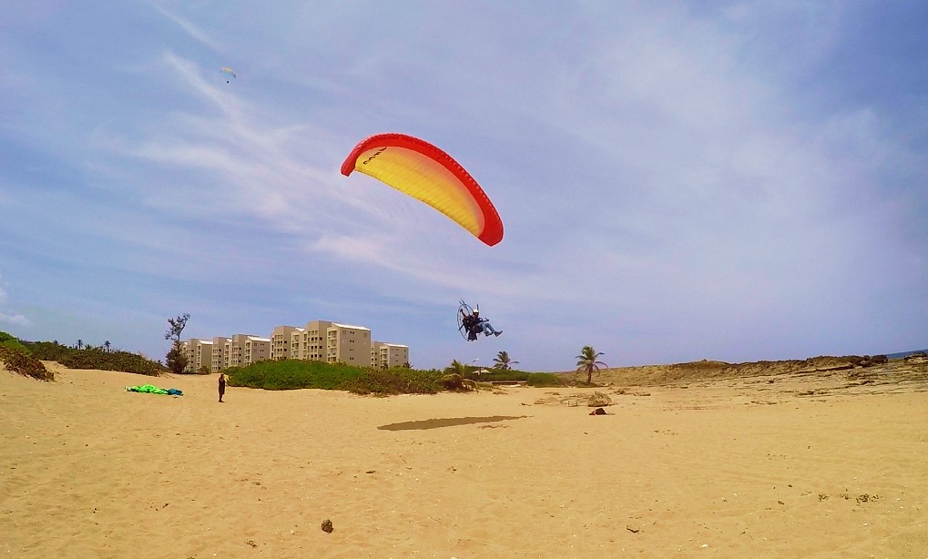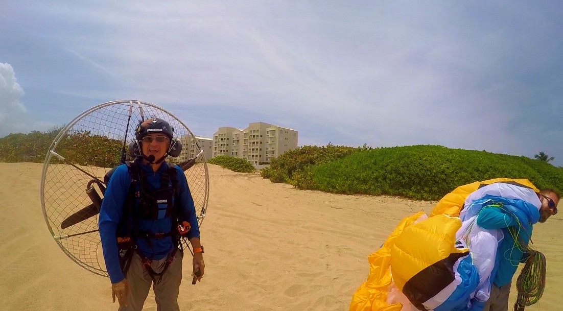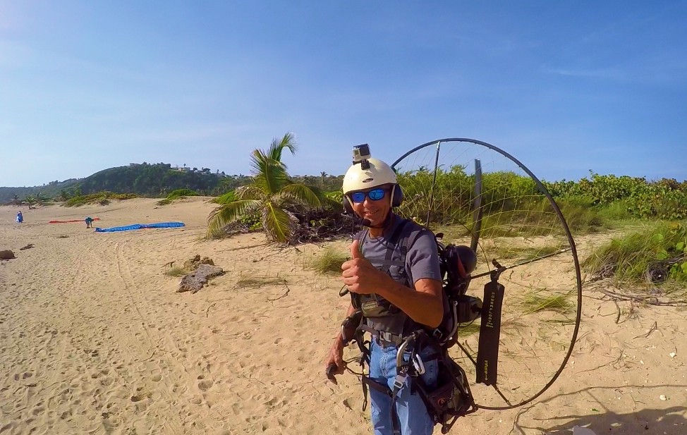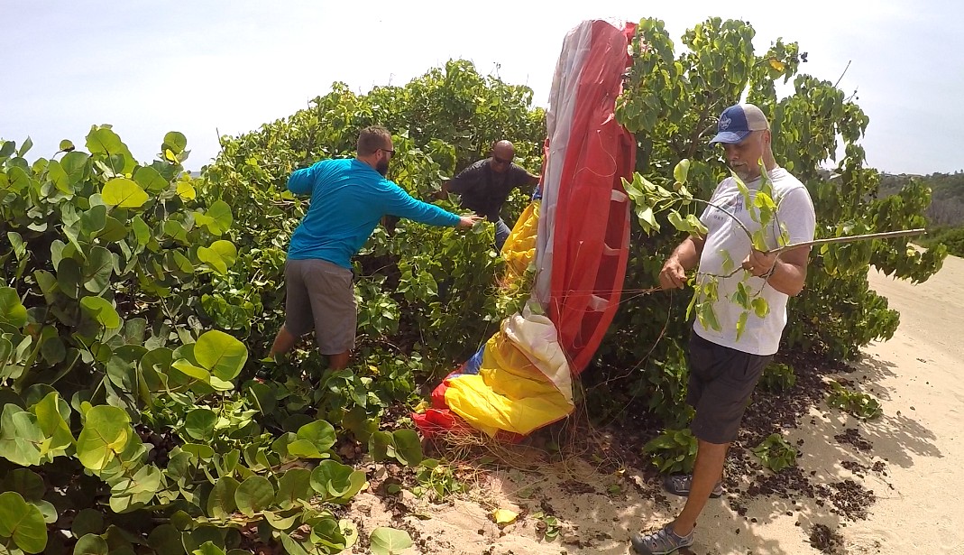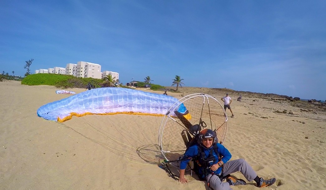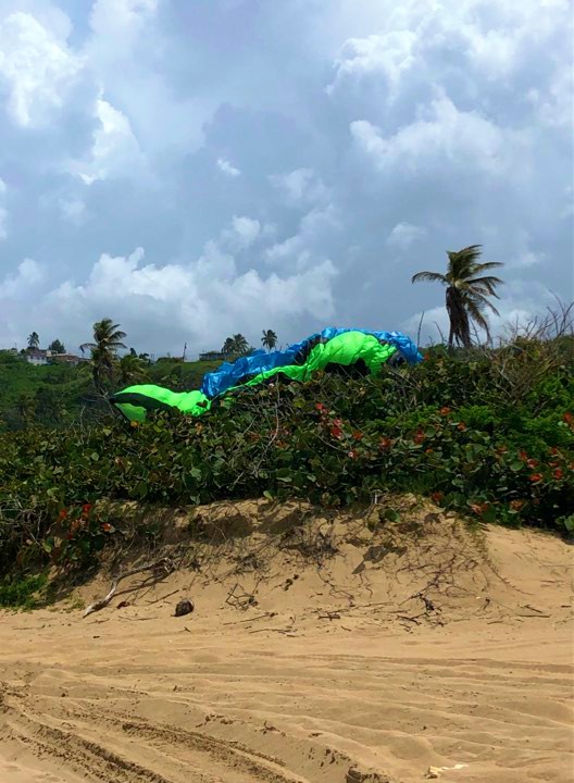 Within such pleasure, there were unexpected mishaps. It turns out that the paramotor that Rubén flew, just quit, and he had to land in an area known as “Secret Spot” that locates between Middles Beach and Jobos. For Rubén, this was just his third flight of his career and he had to make an emergency landing 😲!!! He did very well although part of the paraglider fell in a tree💪. About 20 minutes later, the engine failed to Luis and Marcos. This was close to the landing area in Villa Pesquera. Again, no major complications.