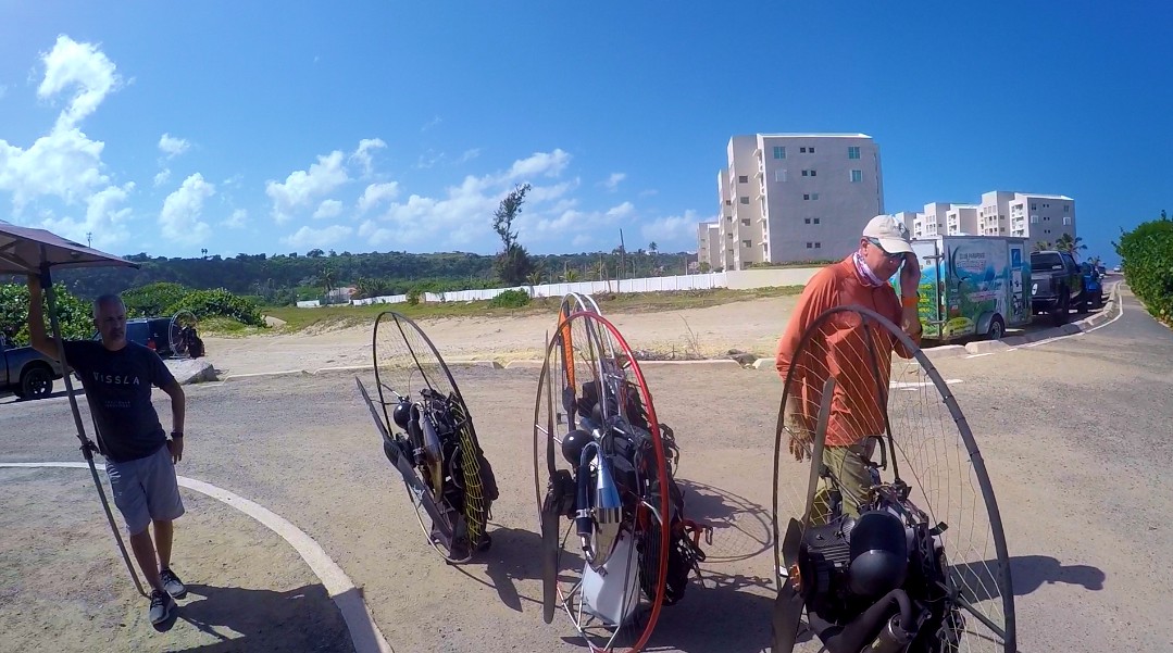 In Isabela, the weather was good early in the morning. Omar and Thaddeus went flying together all the way to Quebradillas and Aguadilla. In the meantime, Luis took the opportunity to give a Demo flights to a childhood friend, José from Aguadilla. After that, he also make Tandem Flights to the students José Villanueva and Jimmy as part of their instruction. Both had the opportunity to take the controls and fly the paramotor assisted by Luis. Noel and William arrived late in the morning for the activity. By the time they tried to launch, the wind had risen the intensity and they decided not to try the flights for safety reasons.