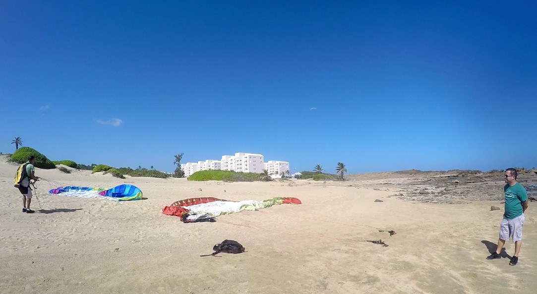 In Anasco, with the arrival of Alex, the three pilots decided to fly “Cross” to Rincon. Once they arrived flying at Rincon Municipal Beach, Alex and Chey found themselves in need of land. A cloud with rain had blocked their return route. Fortunately, Gregory, could return to Anasco and eventually went to Rincón in his Pick Up in search of Alex and Chey.