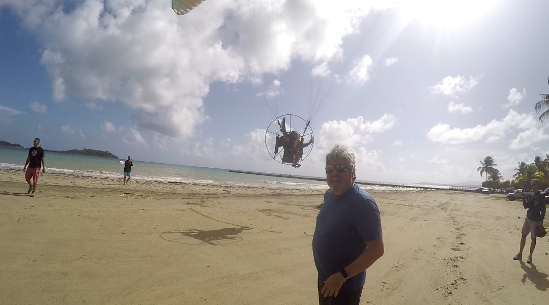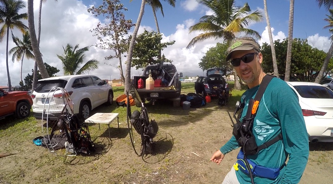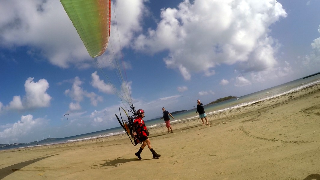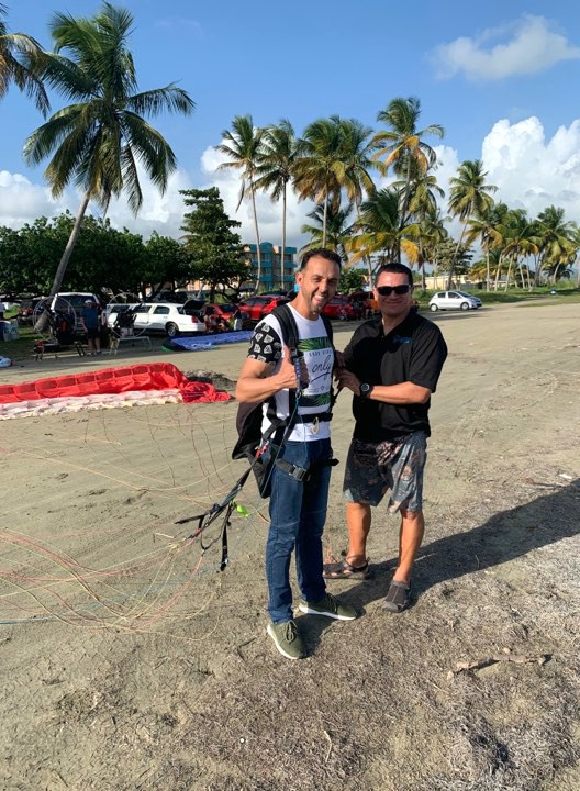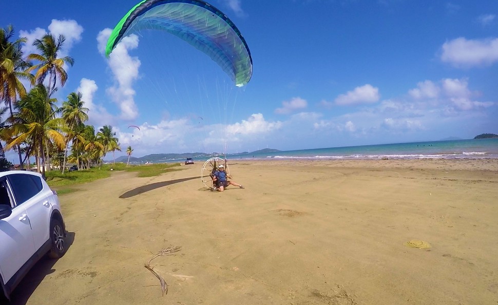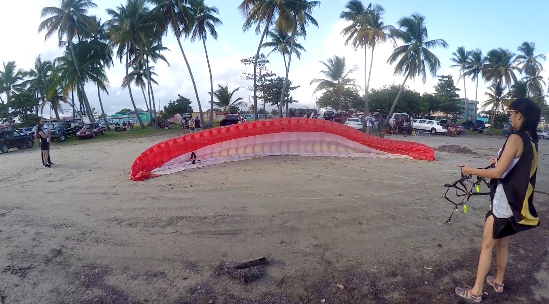 We moved to Punta Santiago de Humacao, where, as seen in the weather forecasts, the flight conditions were excellent. The mentioned pilots were joined by the student Christopher Cruz who was accompanied by his wife Lexy. Osvaldo “Farruco” Rivera and his girlfriend Maria, (they had shared with Luis last week in Isabela, and they were present with Osvaldo considering start his training), also, Julio and his wife arrived. Julio is a private helicopter pilot and is considering taking paramotor courses.