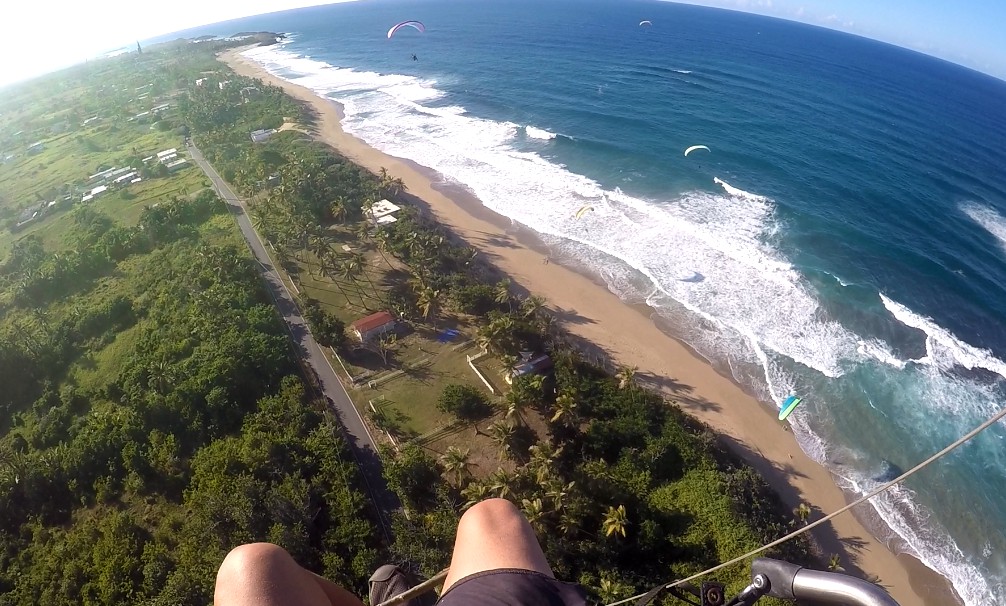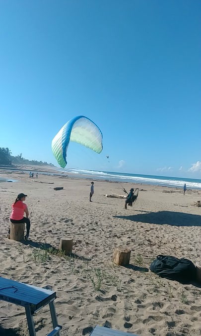 While this was happening.. in Hatillo, with Luis’s instructions, Chelo launched on his third flight of his career and also Robert Gonzalez who had not been able to share with us for months due for professional reasons. Both achieved excellent takeoffs and landings, although in the case of Chelo, due to unexpected problems with the spark plug of the paramotor, he had to land on Camuy beach. Nothing to worry about, Chelo did very well, and we went quickly to look for him. Danny Cintron was also flying, and for the first time flying an Apco Lift EZ R, in which he was very impressed. Like a Porsche as he mention after the fly…
