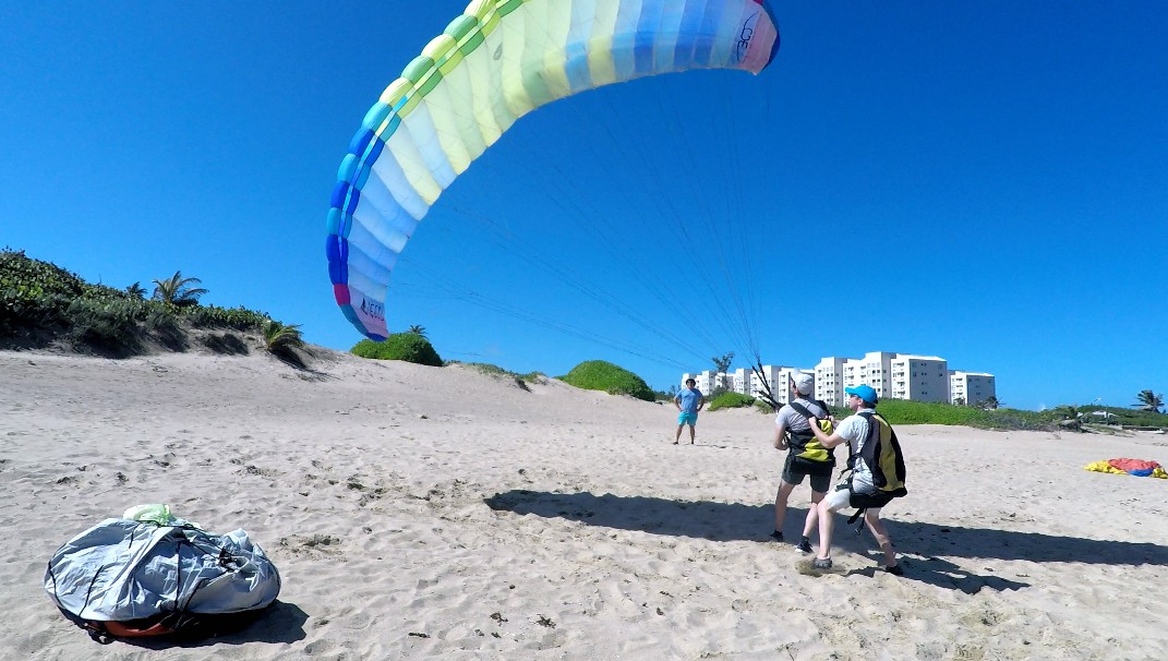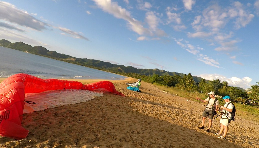 The first two days the training was carried out mostly in Villa Pesquera Isabela. There, we gave a theoretical introductory of the sport to Spencer and Cameron, and then the classes of control the paragliding began. While this was happening, Ted assisted Luis in the practices and polished his flying skills.