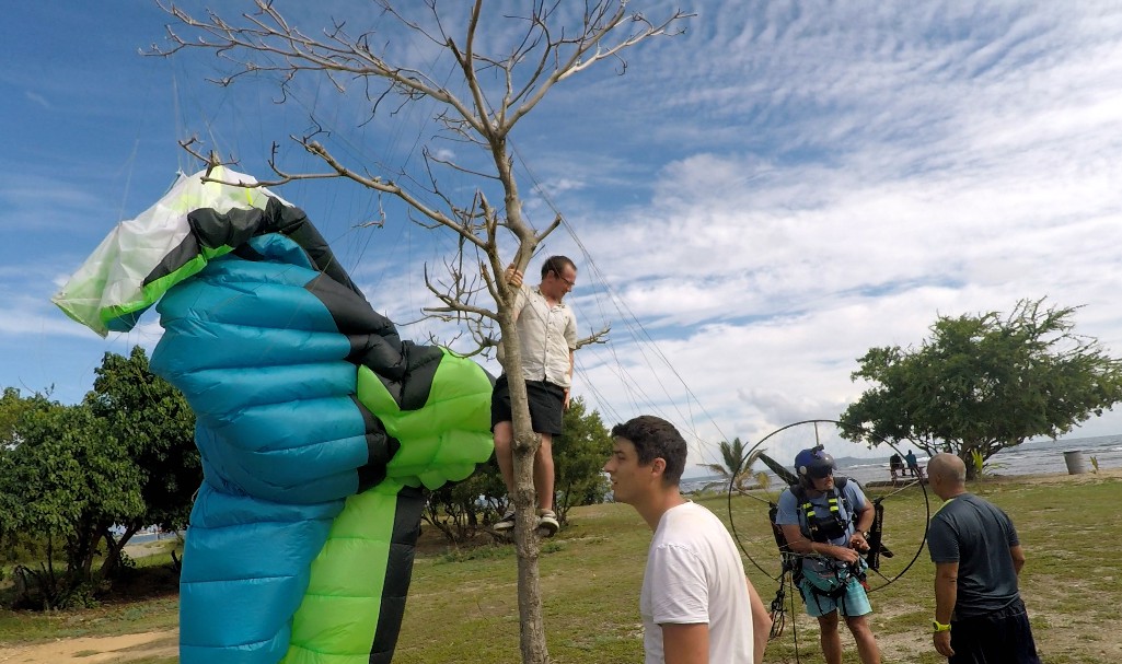 Spencer was using a SkyMax EOS100 paramotor with Apco Lift EZ R paraglider, while Cameron used a SkyMax Moster with Apco Thrust paraglider. Ted, Luis and Sao accompanied them in the air.
