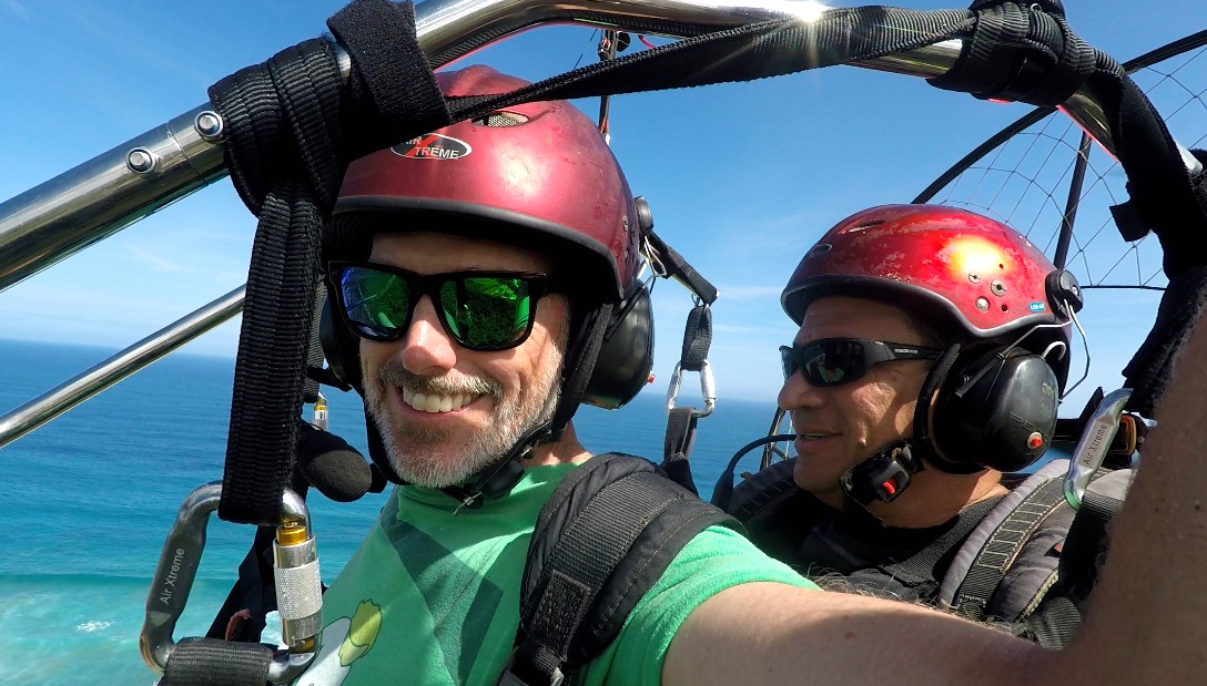 While Luis, as part of Dave’s intensive training, took him in a Tandem fly where Dave was much of the flight in charge of the controls. For Dave, being a private airplane pilot, and practicing “Kite Surfing”, the Paramotor has been very natural for him.