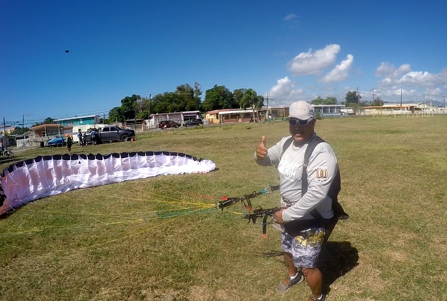 In the meantime, Roberto Nieves received his new Apco Lift EZ R paraglider from Luis. Some minutes later, he joined the other students in their practices. Later in the day, Gabriel, Ted, Sao, David, Luis, Randy and Rubén goes flying. Some venture their flights to Ponce area, and others to Salinas. But Rubén was the exemption.