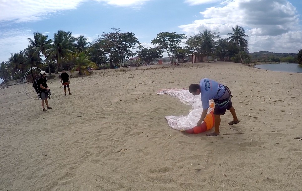 For his part, Luis dedicated time to the official beginning of Ariel’s training, covering the technical and theoretical part before starting to practice with the paraglider. In the meantime, Alberto and Mark practiced the controls with paragliders. At one point we put the Paramotor on Alberto’s back as part of his practice, if everything went well, he could turn and go flying. Eventually, this was not possible as the weather began to deteriorate. Anyway was a great practice for Alberto.