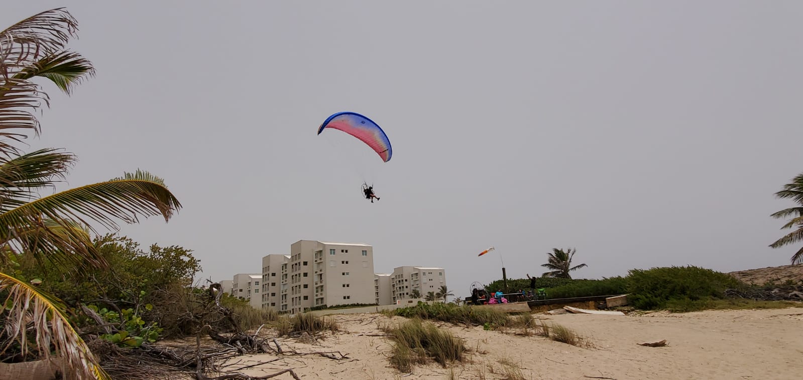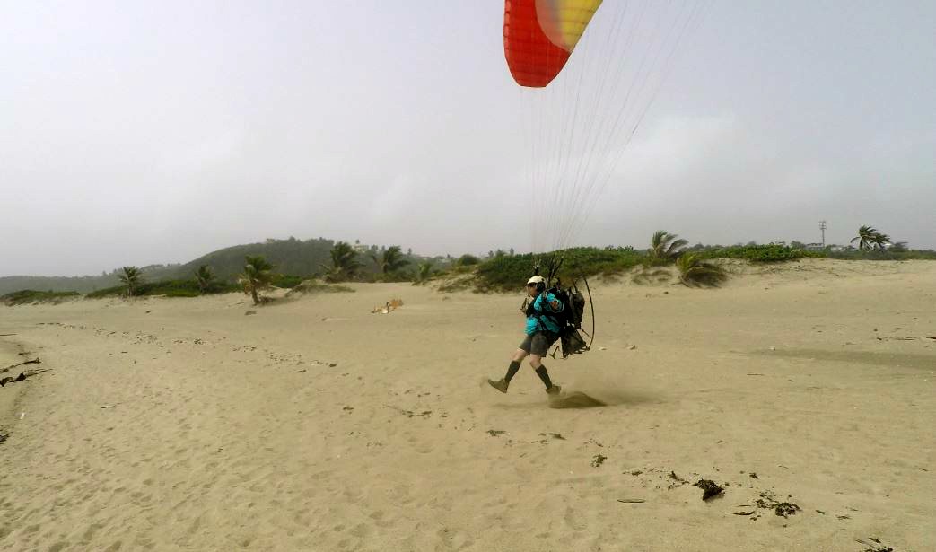 Early winds were at about 15 mph of constant intensity. This went up during the day to 17 mph with some gusts measured at 22 mph. Despite the strong wind, as the sun was being partially blocked, the flight conditions were quite laminar. Luis Ruiz went to fly first, verifying that everything was fine. He was later followed by Deron, who is already returning to the USA this week. Deron used for the first time a paraglider size 22 meters with which he felt very comfortable. Juan on the other hand practiced a little with the paragliders before going out to fly.