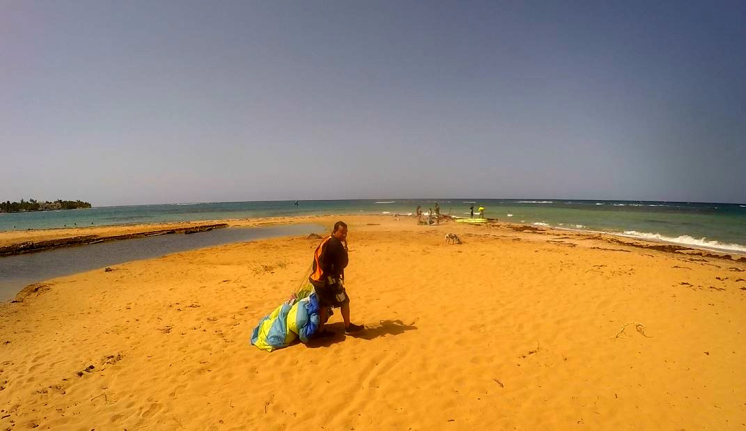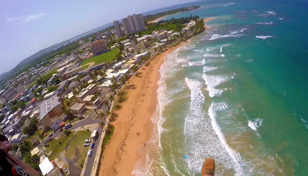 We decided to go to the place known as “La Pared” in Luquillo, where we had not attended for years. There, as expected from forecast, we found a clear sky with constant 15-18 mph winds coming from the NE. Ideal for flying the entire area (if you have the skill and correct equipment).