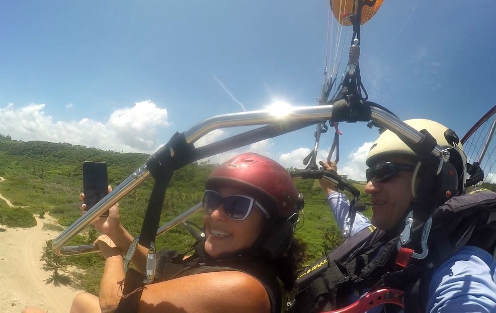 Charles and Evan practiced early with the paragliders and shortly after they were accompanied by Ricardo. Meanwhile Luis was making another introductory flight, this time to Mercedes, Alberto’s wife. Both Mercedes and Edgar enjoyed so much their experiences. Once these flights were finished, Ian Darrell continued doing them. He took his girlfriend Paola for a fly trip. With this flight, Ian already has 5 introductory flights in his young career as Paramotor Tandem Pilot. Here some clips of the people Living the Experience in the Paramotor…