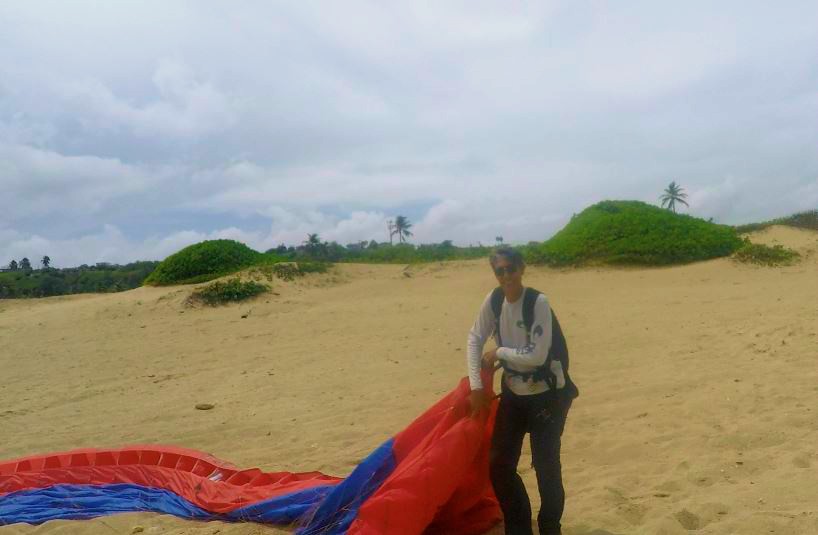Omar Colon in the process of landing. No sand at all in the Paramotor!!!