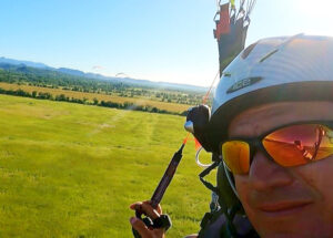 Meanwhile, Darwin took out the Typhoon paraglider, a new model from the folks at BGD, and headed out to fly the valley alongside Anthony. Anthony spent the flight capturing photos and video of the glider that will later be used for promotional material.