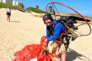 Luis Ruiz still had two Introductory Tandem Flights to complete as part of sharing the sport. The first was with Maite, the girlfriend of our friend Emanuelli, who had previously experienced a flight with us. The second flight was with Abby, who was visiting from Colorado and is a friend of Kristiano and Reba. Below, we share a few videos capturing both of their experiences. It’s worth mentioning that Luis had to fly with a smaller paraglider in order to safely carry out these flights.