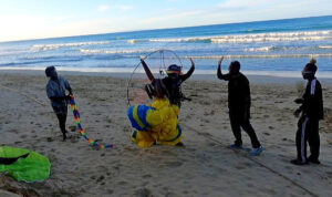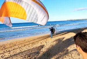 This time, Luis, Edgardo, and later David took to the skies. Luis flew along the Cosón coastline, but when the wind began to turn turbulent from inland, he chose to land. Noah was kiting the Sky Z Blade Paraglider around the area with some dunes.