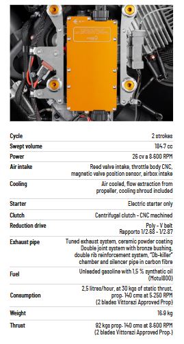 The Moster185 EFI is the pinnacle of technological innovation and engineering precision from Vittorazi Motors, a company that holds the patent for electronic fuel injection dedicated to paramotors.